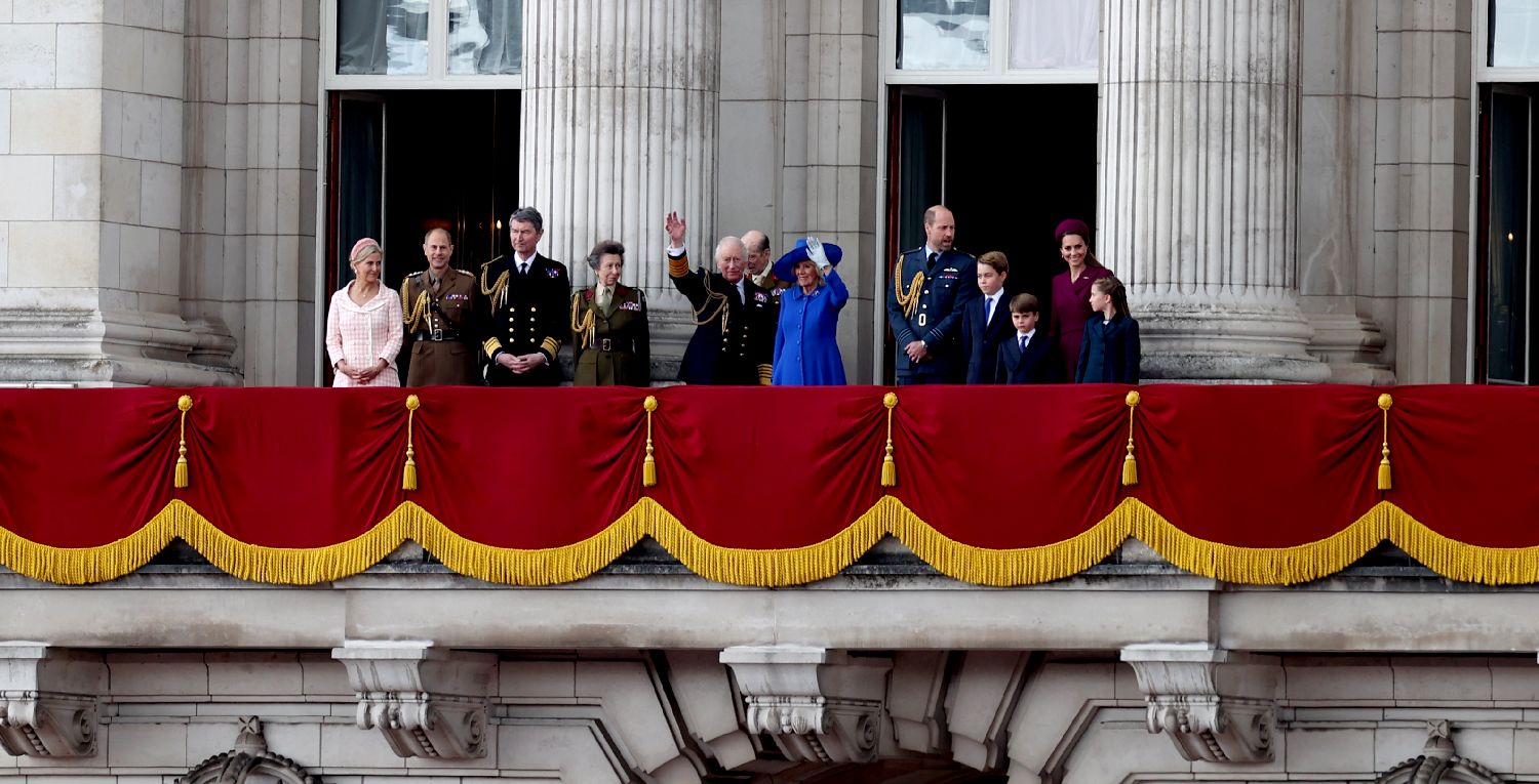 5月5日,在英国伦敦,英国国王查尔斯三世、王后卡米拉在白金汉宫阳台向人群挥手致意。(图片来源:本文图片均据新华社)