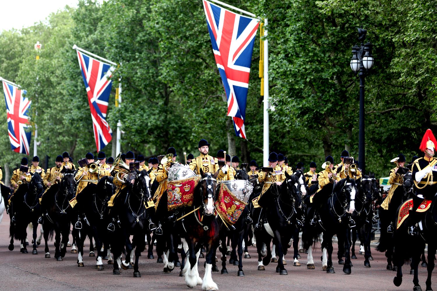 5月5日,在英国伦敦,军人参加阅兵仪式。