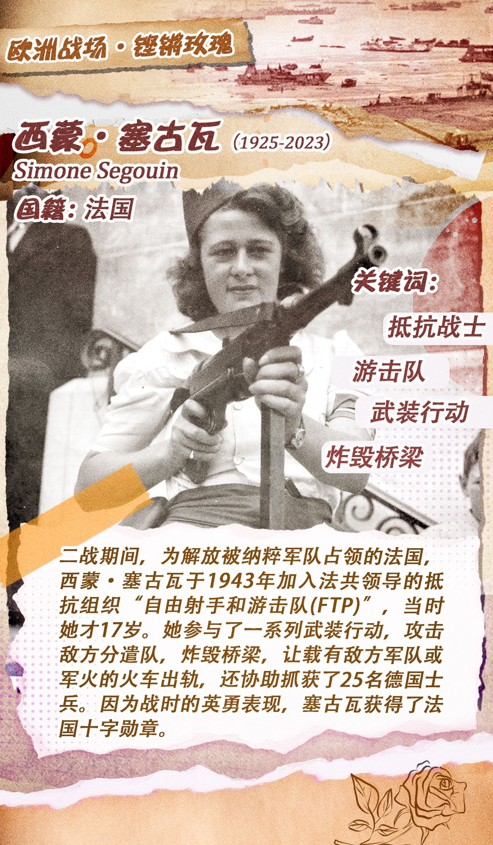 【欧洲时报网】“我是为抵抗而战,仅此而已。如果让我重新选择,我还是会如此,因为我没有遗憾。德国人是我们的敌人,而我们是法国人。”晚年的西蒙·塞古瓦(Simone Segouin)谈起二战时的经历时如是说。