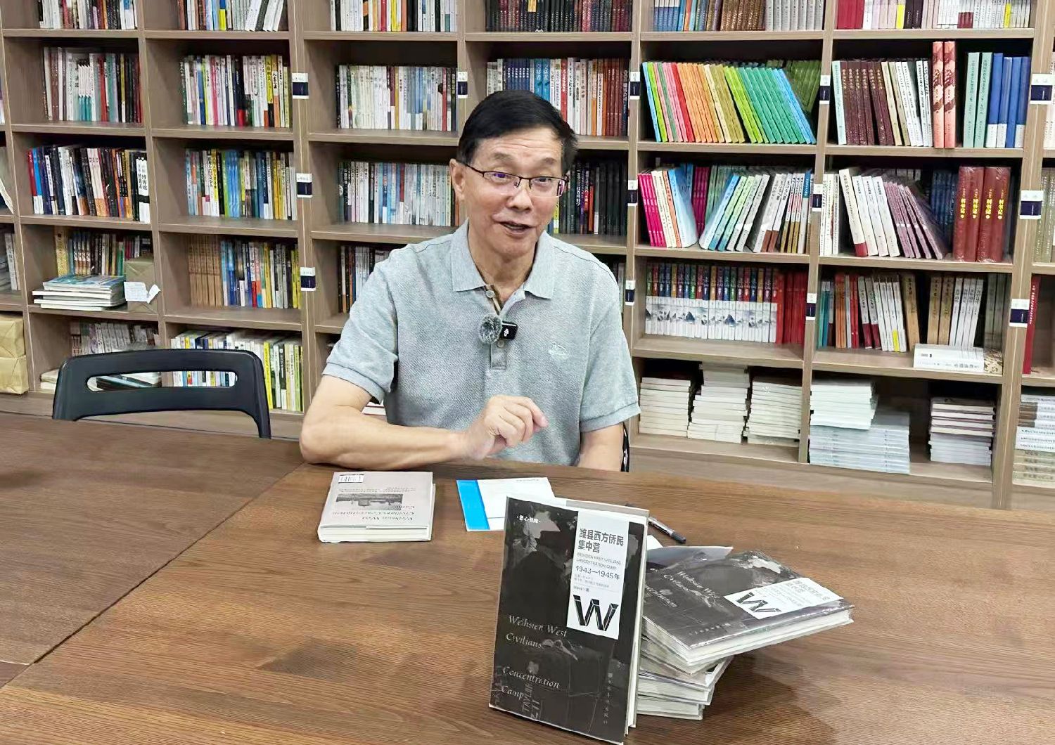 《潍县西方侨民集中营:1943—1945年》是旅欧作家张执任以非虚构方式书写的作品。张执任以理性且朴实的笔触详尽还原了二战期间日本侵华时期在山东潍县设立西方侨民集中营的黑暗历史,揭示了日军对同盟国侨民的残酷迫害,以及侨民们在极端恶劣环境中所作的生存努力与顽强抗争。图为张执任接受《欧洲时报》专访,畅谈写作此书的心路历程。(图片来源:欧洲时报余有摄)