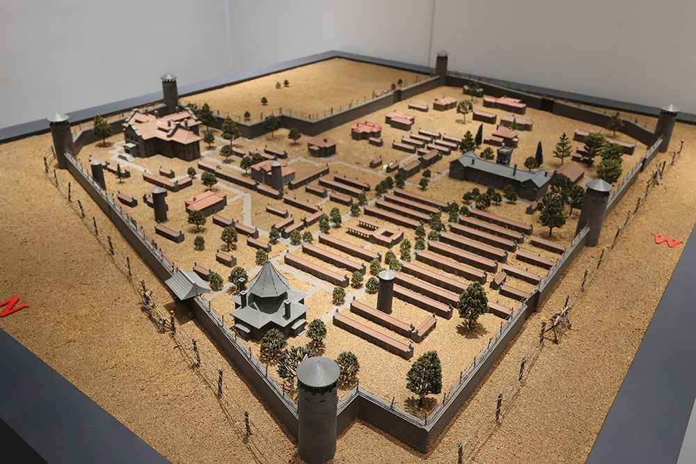 图为正在潍县西方侨民集中营旧址博物馆展出的潍县集中营沙盘模型。(图片来源:欧洲时报李璟桐 摄)