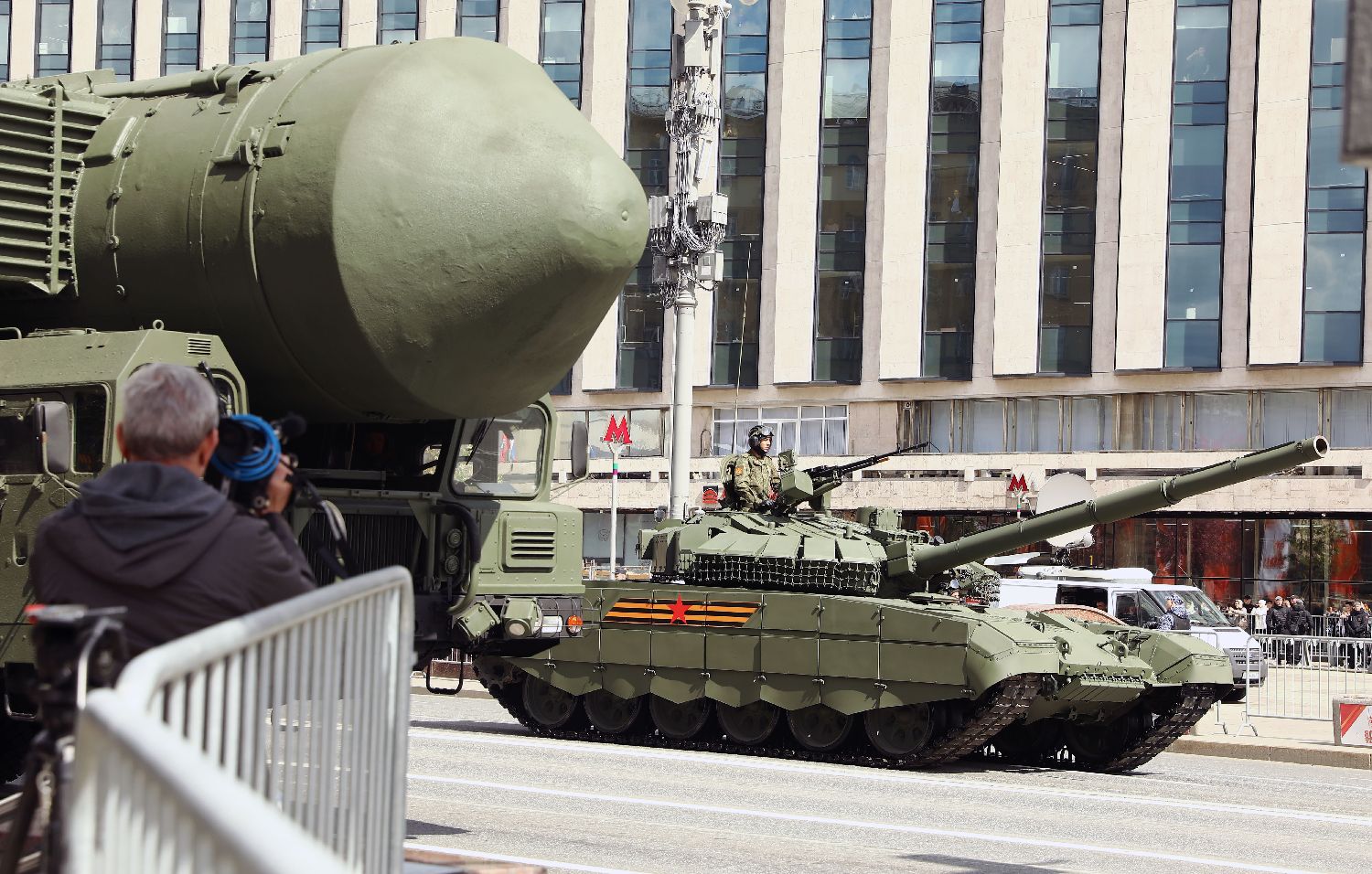 这次彩排是5月9日红场阅兵式前的最后一次彩排。图为战车编队从市中心驶过。(图片来源:本文图片均自中新社)