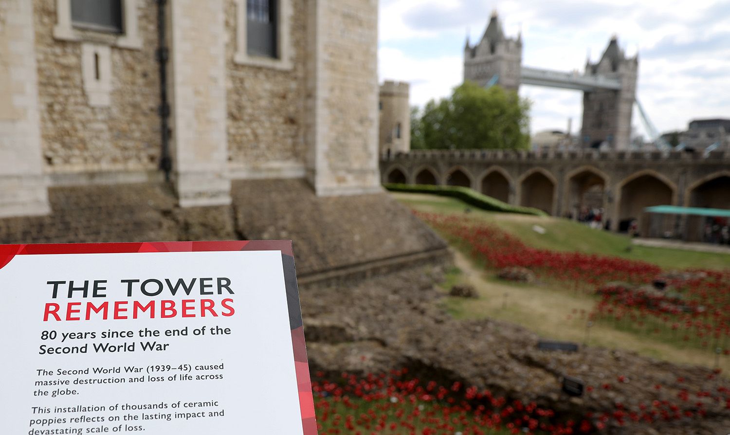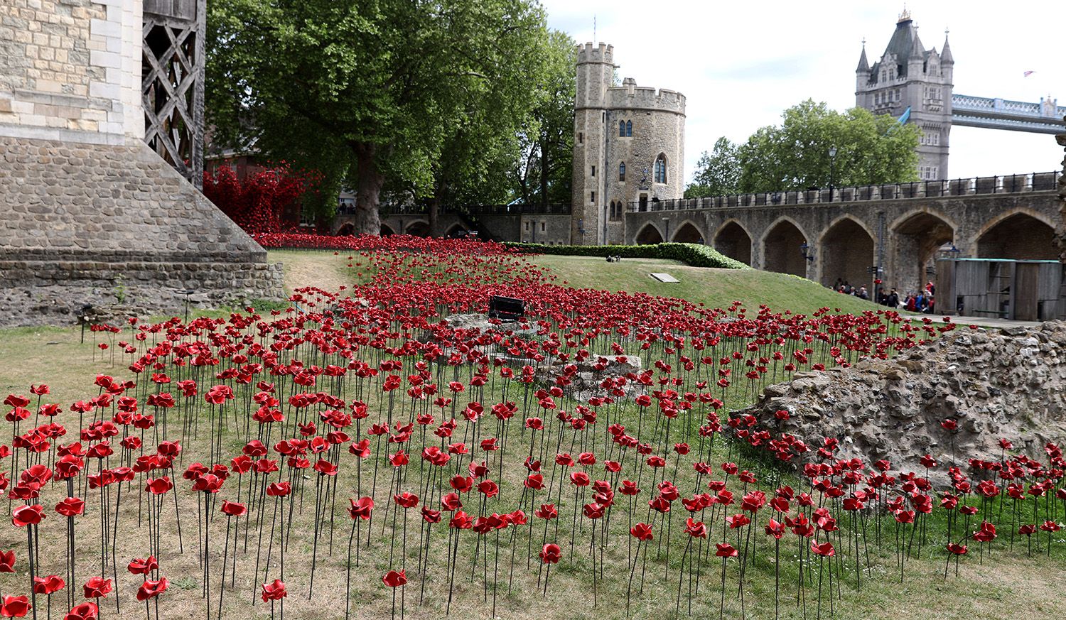 由陶瓷制作的罂粟花组成的装置艺术品于5月6日至11月11日在英国伦敦塔展出,以此纪念在第二次世界大战中献出生命的将士。