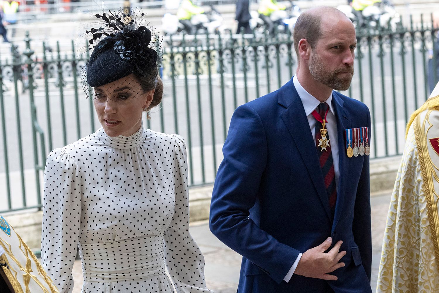 5月8日,在英国伦敦,威廉王子和凯特王妃抵达威斯敏斯特教堂参加感恩仪式。