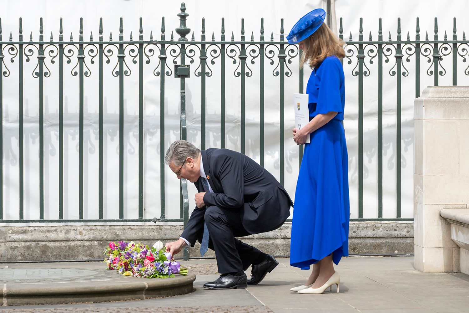 5月8日,英国伦敦威斯敏斯特教堂举行感恩仪式,纪念第二次世界大战欧洲战场胜利80周年。