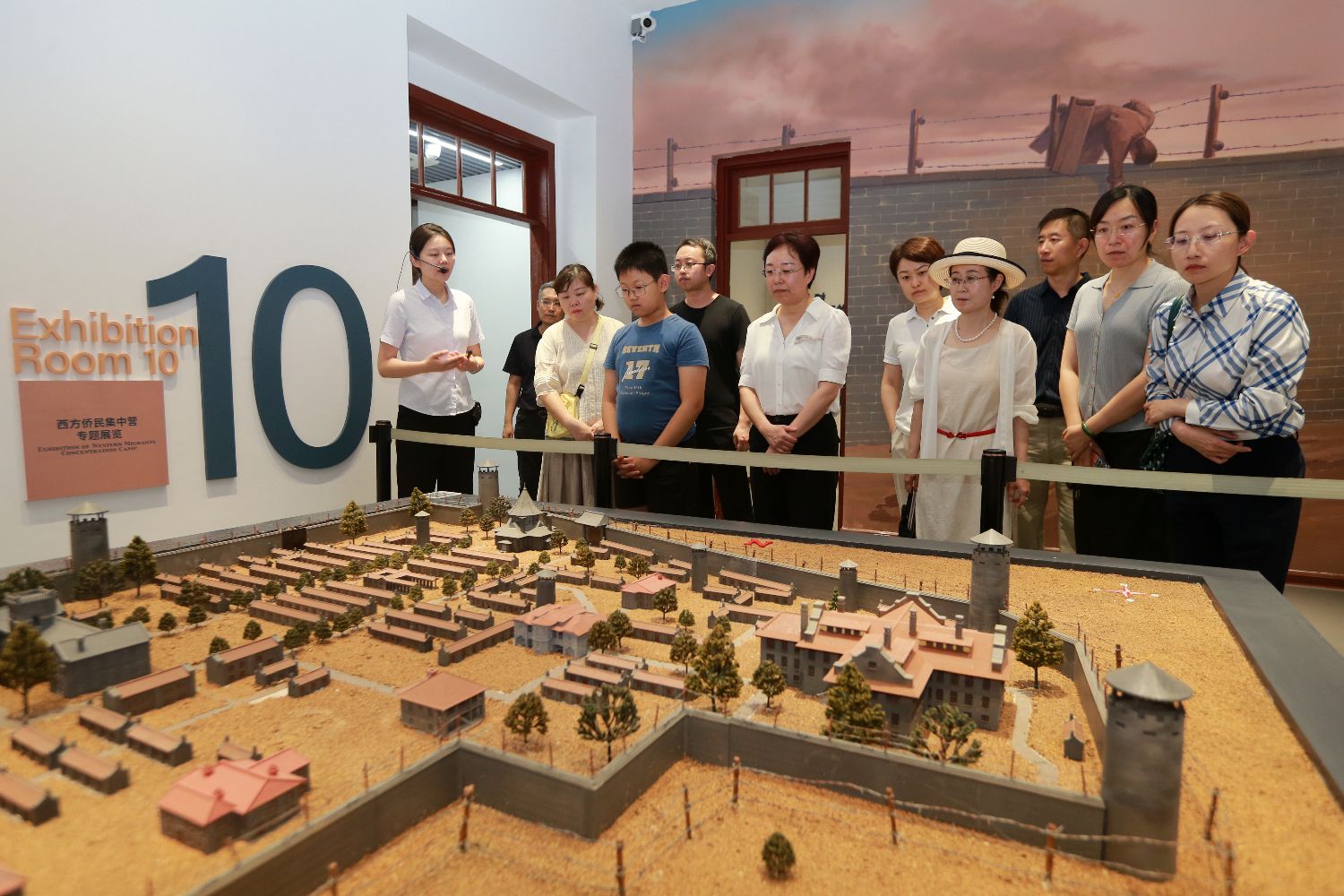 7月22日,在山东潍坊,民众在潍县西方侨民集中营旧址博物馆参观潍县西方侨民集中营复原沙盘。(图片来源:本文图片均自中新社)