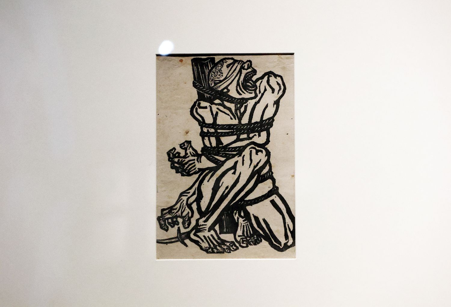 “怒吼吧,中国——北京鲁迅博物馆藏抗战版画展(1931—1945)”近日在北京鲁迅博物馆开幕,百余幅木刻版画带领观众重温烽火岁月,感受抗战时期艺术家“以刀为笔、以木为媒”传递的爱国情怀。(图片来源:本文图片均由李非 摄)