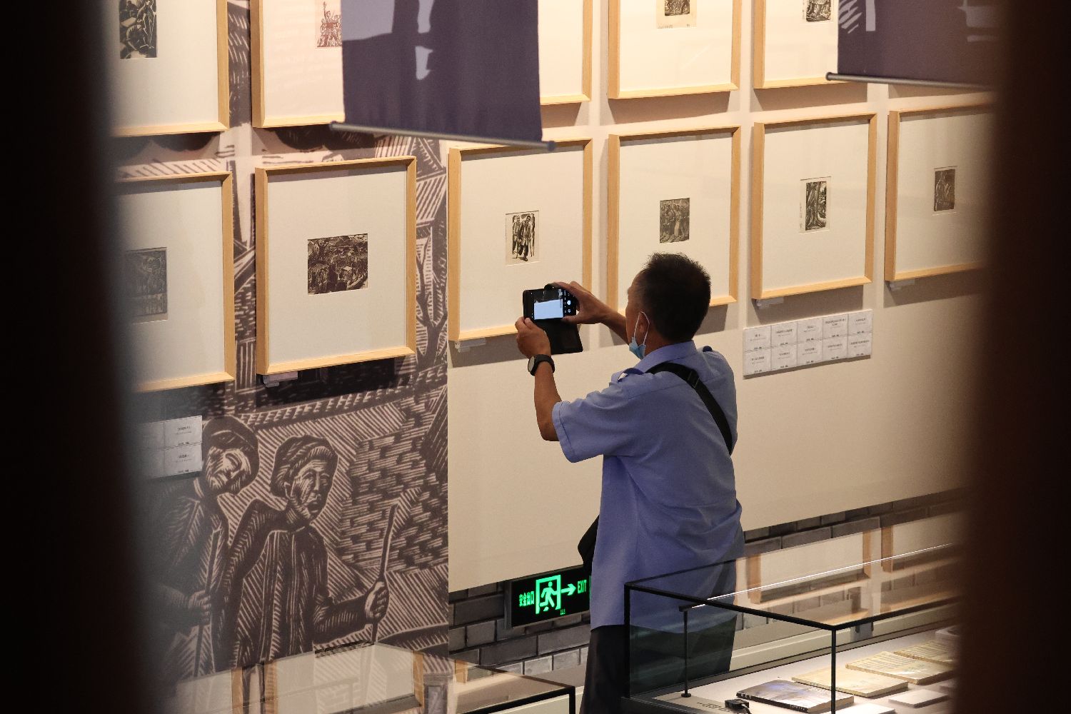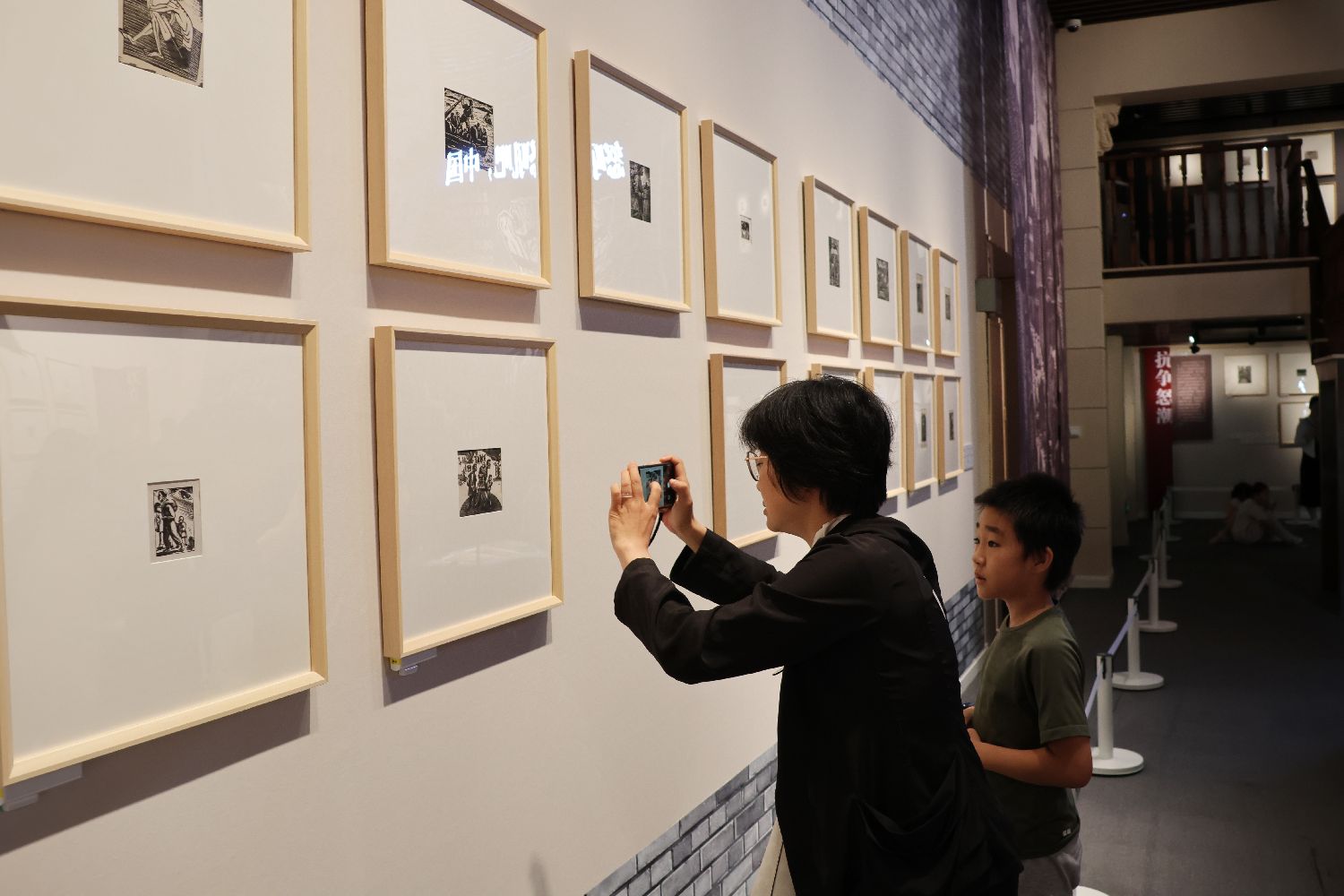 暑假期间,不少家长也带领青少年前去参观,了解中国抗战历史和版画艺术发展。