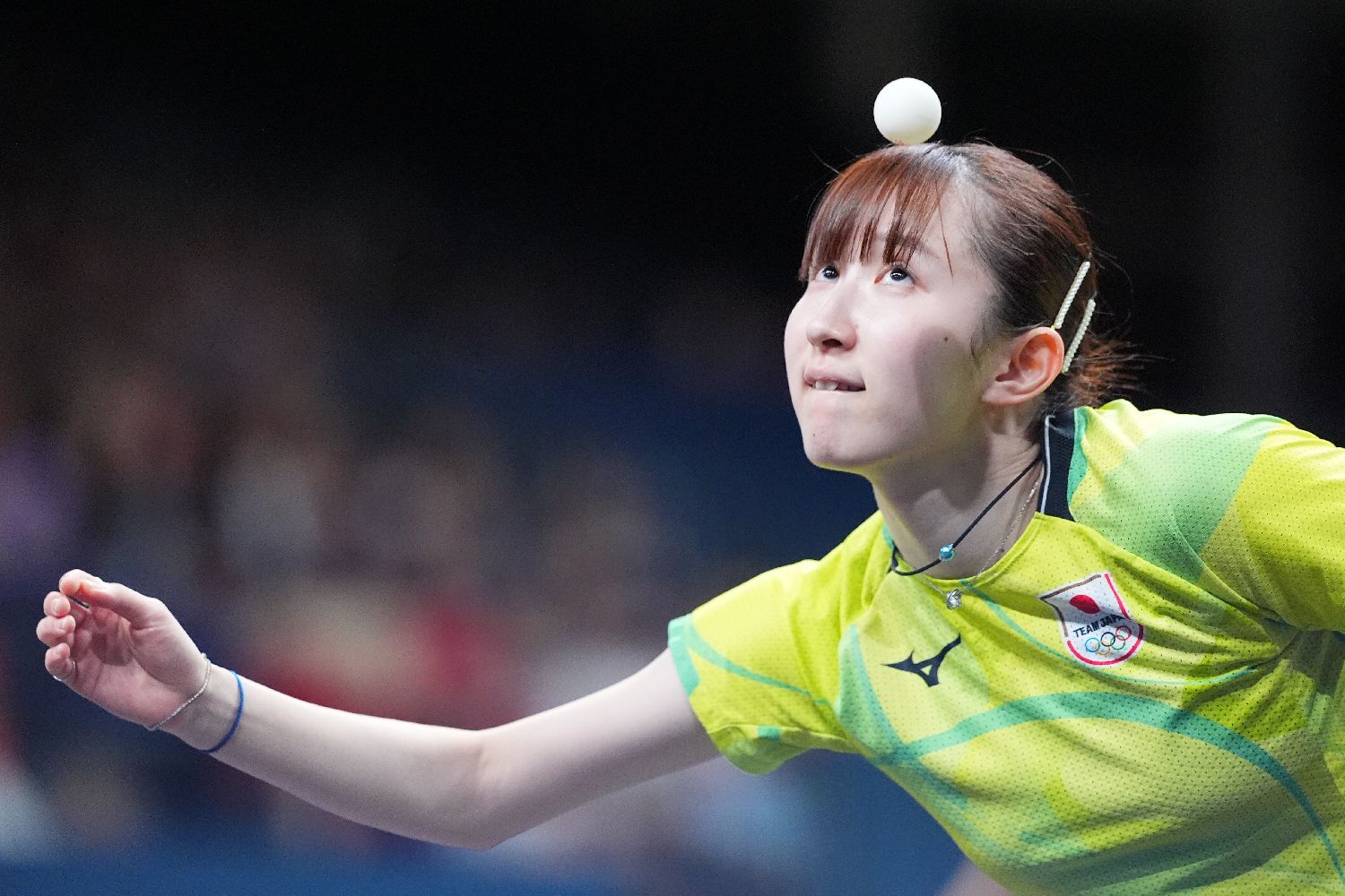 2日,在巴黎奥运会乒乓球女子单打半决赛中,中国队选手孙颖莎4比0战胜日本队选手早田希娜,与队友陈梦会师决赛。中国队锁定该项目的冠、亚军。图为孙颖莎在比赛中。(图片来源:图片均据中新社)