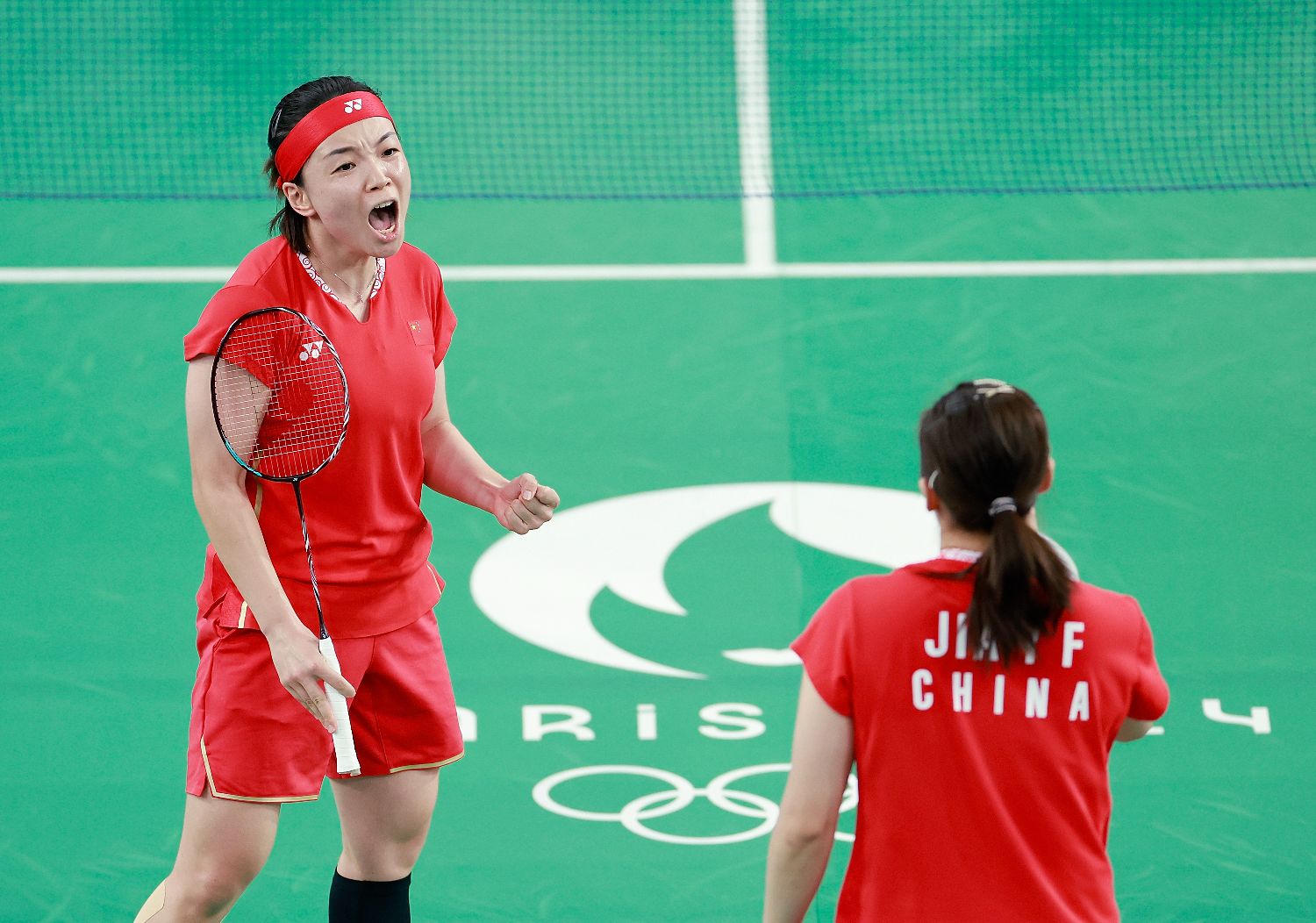 图为陈清晨(左)/贾一凡在比赛中庆祝得分。