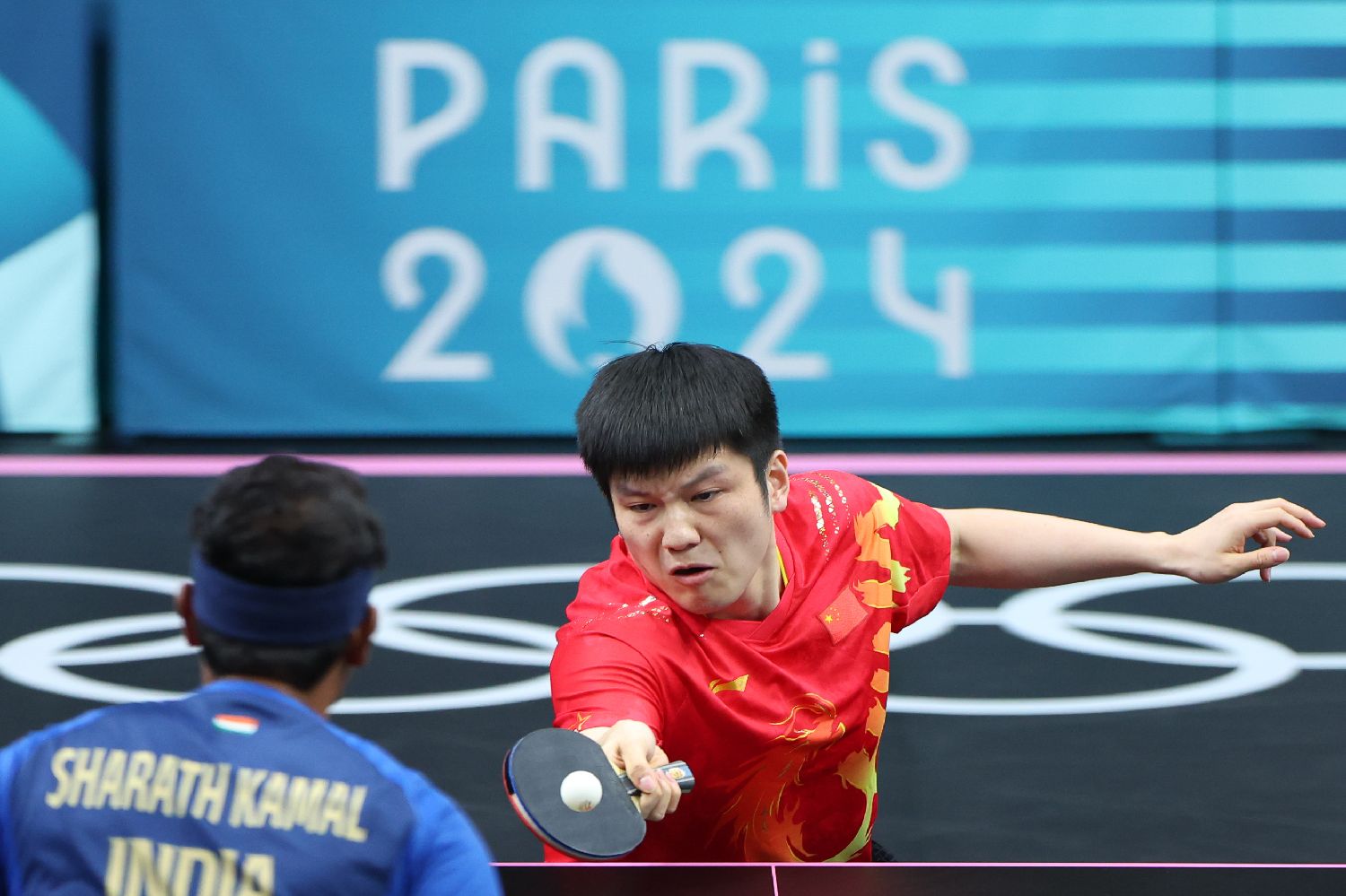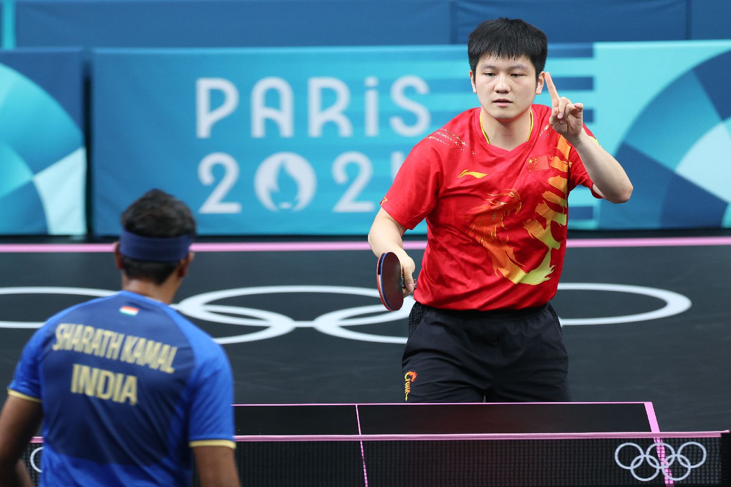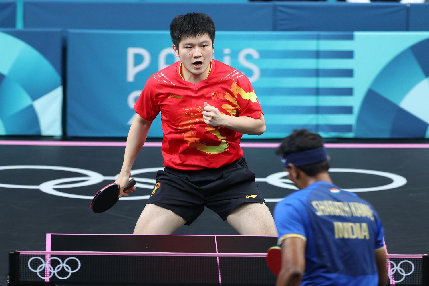 6日举行的巴黎奥运会乒乓球男团16强赛,中国队对阵印度,中国球员马龙迎来巴黎奥运会首秀。中国队以总比分3比0战胜印度,晋级8强。
