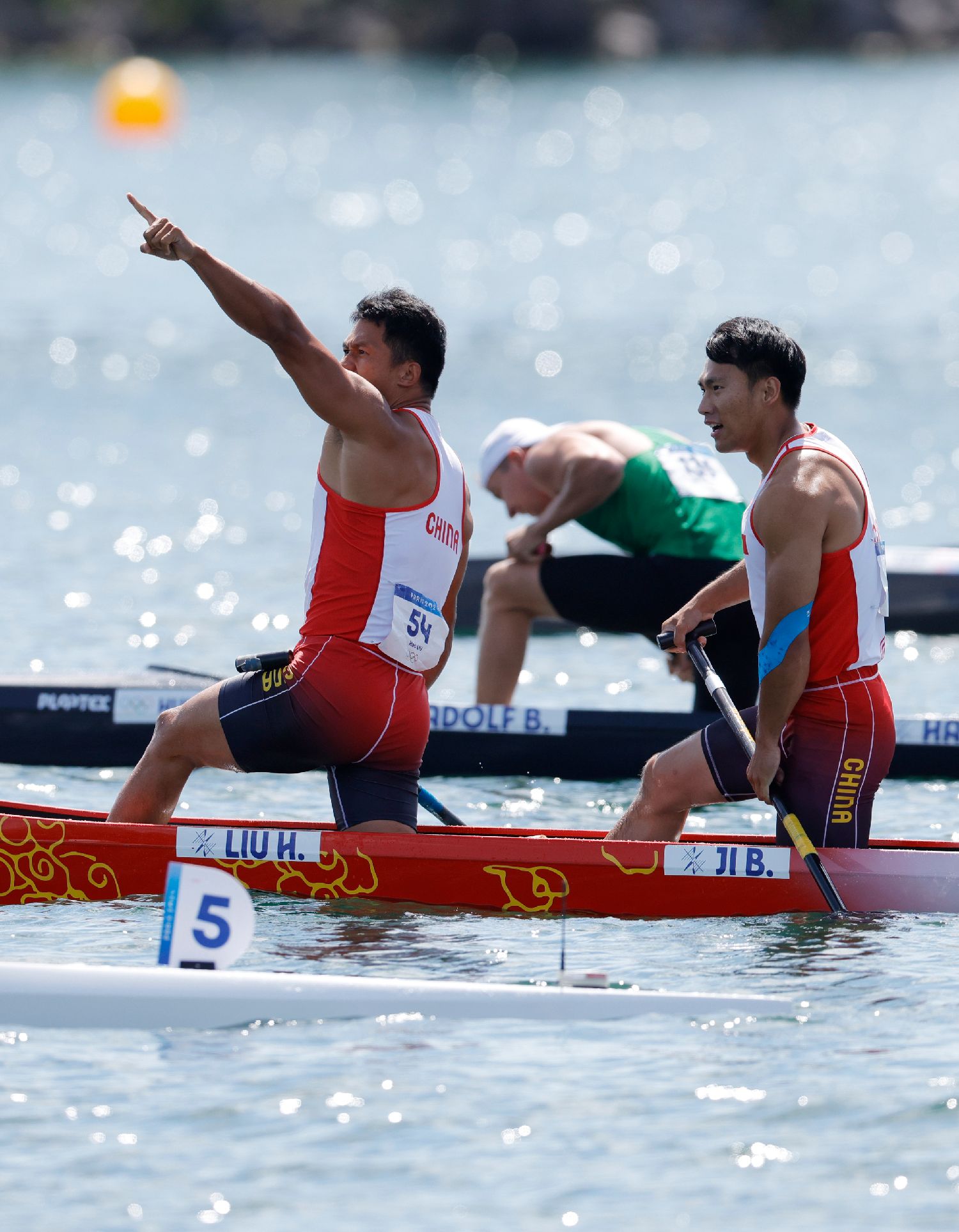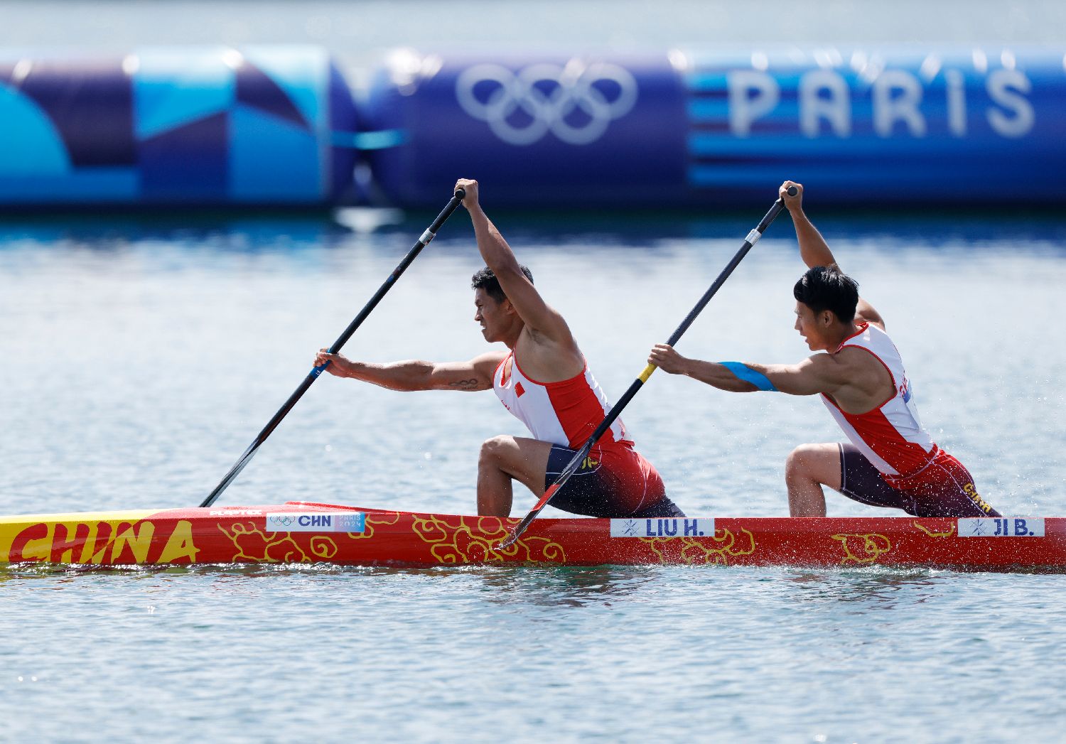 8月8日,在巴黎奥运会皮划艇静水男子双人划艇500米决赛中,中国选手刘浩、季博文夺得金牌。