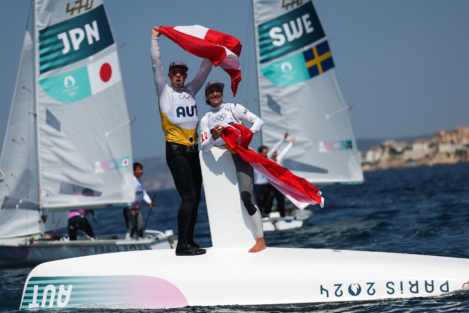 8月8日,2024年巴黎奥运会帆船项目混合470级帆船奖牌轮在法国马赛港举行。奥地利组合瓦德劳/梅尔获得金牌,日本组合冈田奎树/吉冈美帆获得银牌,瑞典组合达尔贝里/卡尔松获得铜牌。