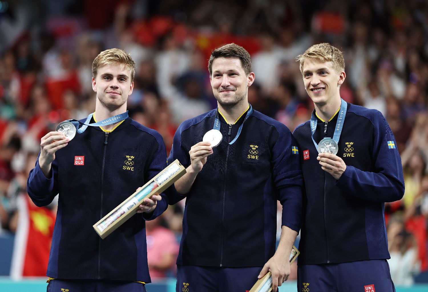 8月9日,亚军瑞典队在颁奖仪式上。