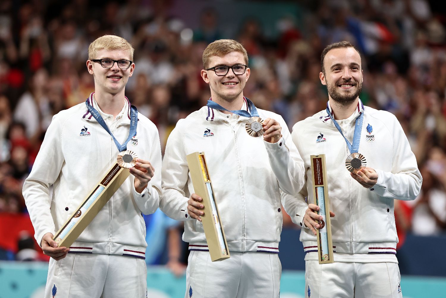 8月9日,季军法国队在颁奖仪式上。