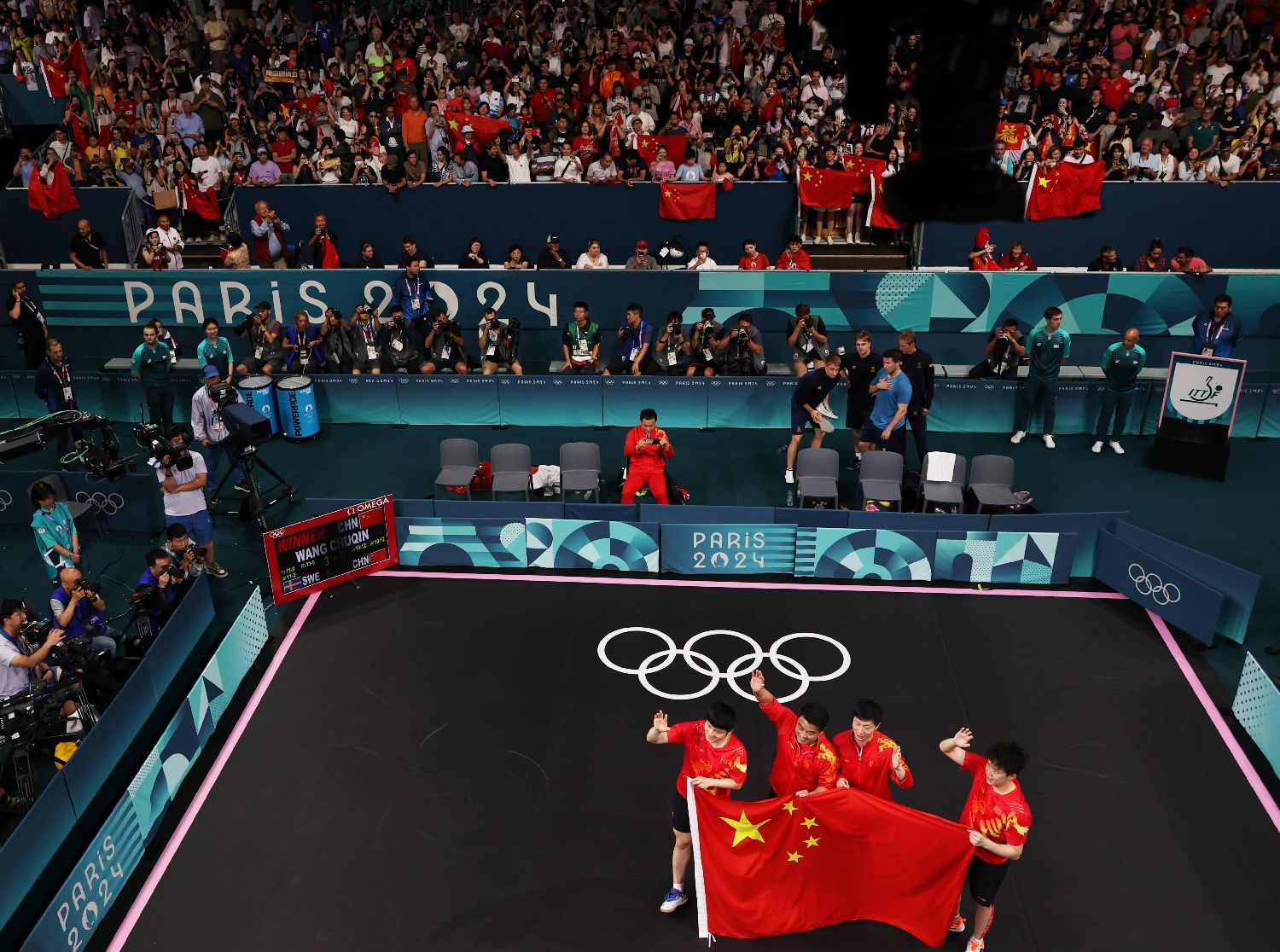 8月9日,中国队战胜瑞典队,获得巴黎奥运会乒乓球男团金牌。