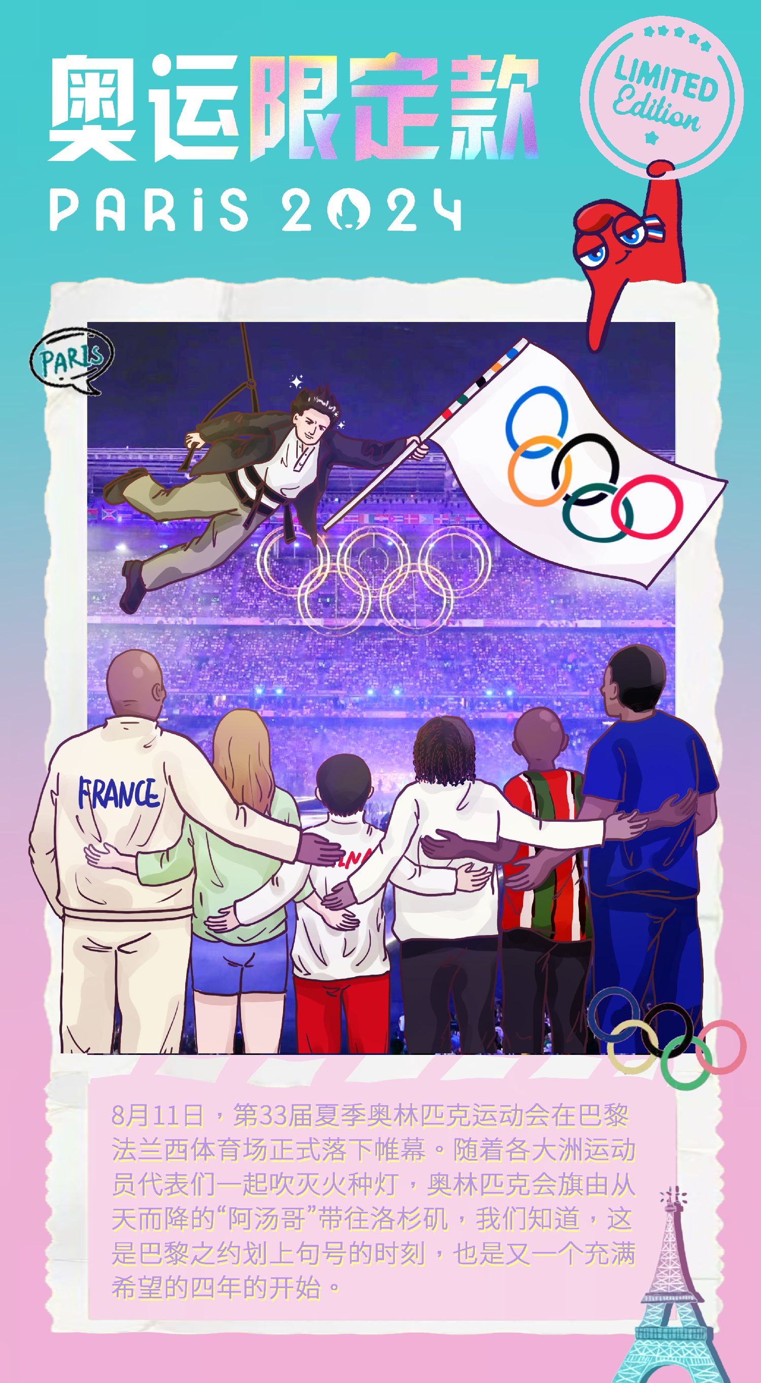 奥运限定款:五大洲运动员共吹圣火、62岁阿汤哥从天而降…Au revoir,巴黎奥运会!