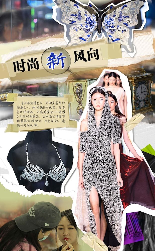 在历届消博会上,时尚是最热的话题之一。琳琅满目的珠宝、各类美妆护肤品、时装周秀场……消博会上的时尚单品,成为激发消费市场潜能的推动力,也会刮起一股新的时尚风潮。(图片来源:欧洲时报制图)