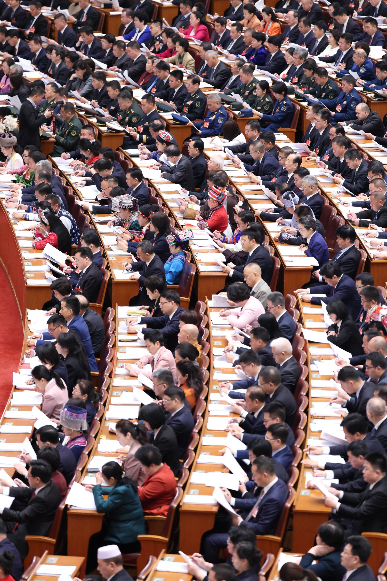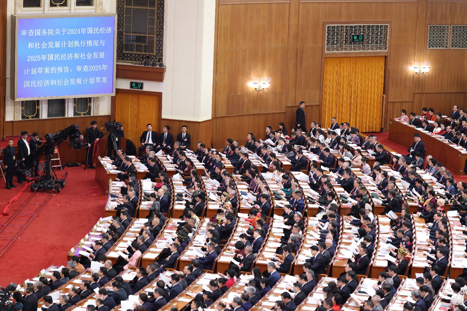 图为大会审查国务院关于2024年国民经济和社会发展计划执行情况与2025年国民经济和社会发展计划草案的报告及2025年国民经济和社会发展计划草案。