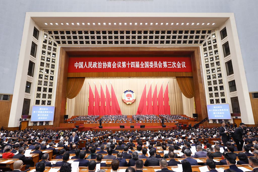 为期六天的全国政协十四届三次会议北京时间10日上午在北京人民大会堂闭幕。