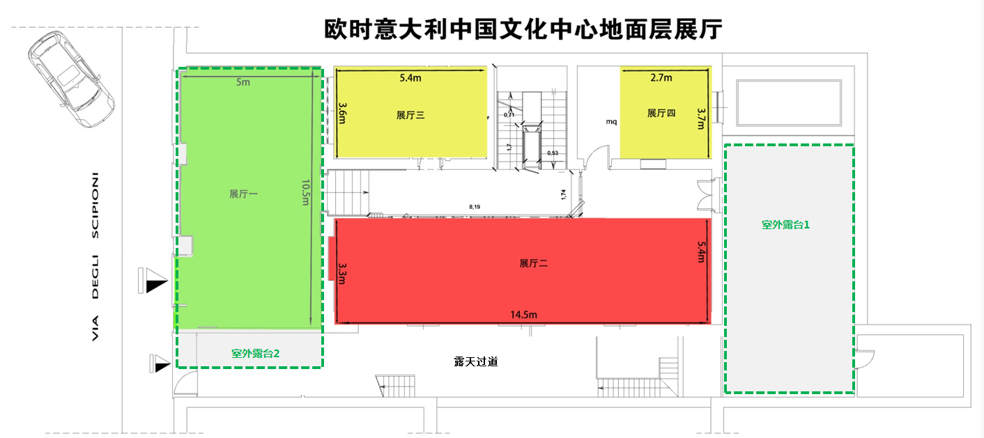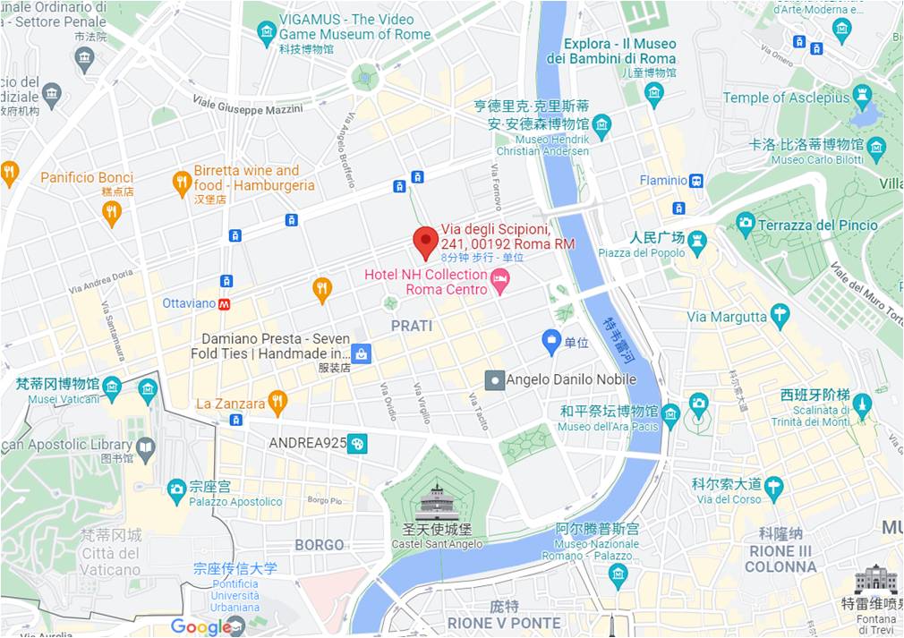 (3)人流量极大的文化区。文化中心地处罗马历史中心,距离梵蒂冈城1.6公里,从房顶平台即可看到梵蒂冈大教堂;同时步行可达圣天使古堡、人民广场、西班牙广场等景区,人流量极大,文化氛围浓重,是办展的极佳区域。