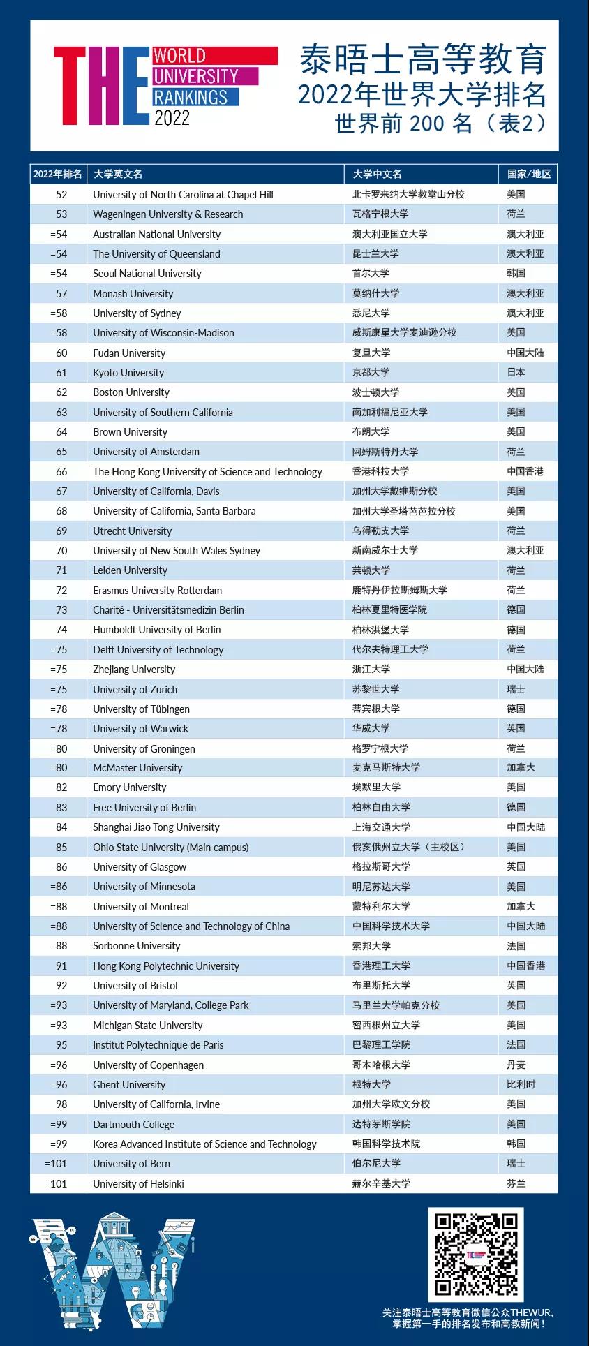 2022泰晤士高等教育世界大学排名公布:清北亚洲并列第一,中国147所高校上榜!
