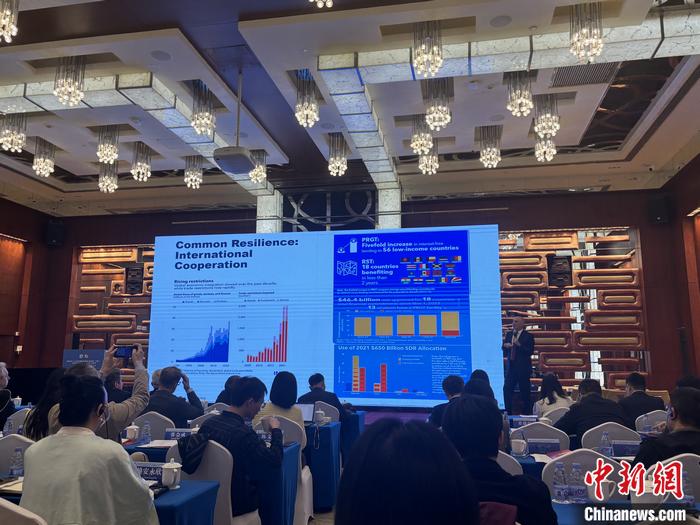 IMF《世界经济展望报告》宣讲会现场。(图片来源:中新网)