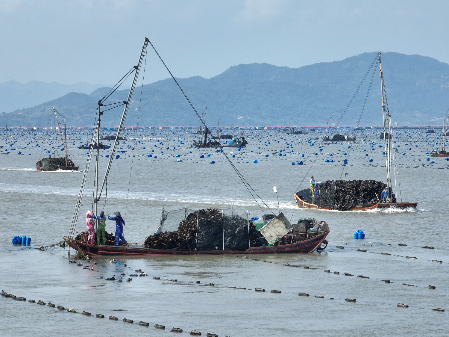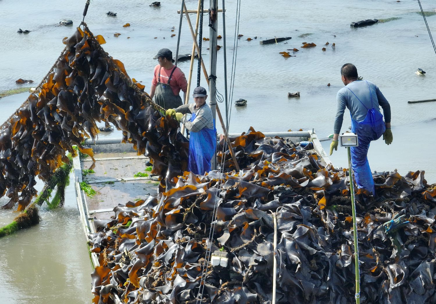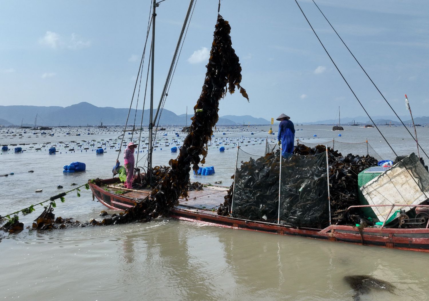 近日,福建省宁德市霞浦县迎来海带收获季。海带是霞浦县农业经济的传统主打产品之一,是当地不少农(渔)民家庭经济收入的主要来源,霞浦县于2009年被授予“中国海带之乡”称号。目前,全县养殖海带占海面积约30万亩,产值约40亿元。
