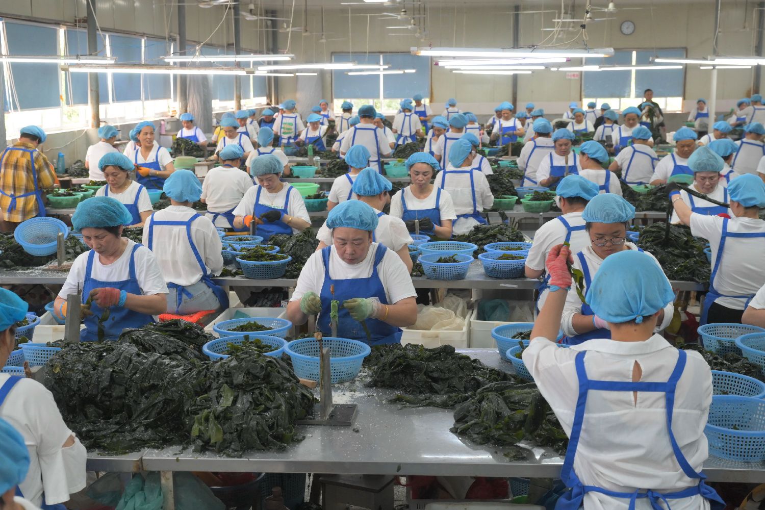 5月8日,在霞浦县,福建溢源海洋食品有限公司工人在加工海带。