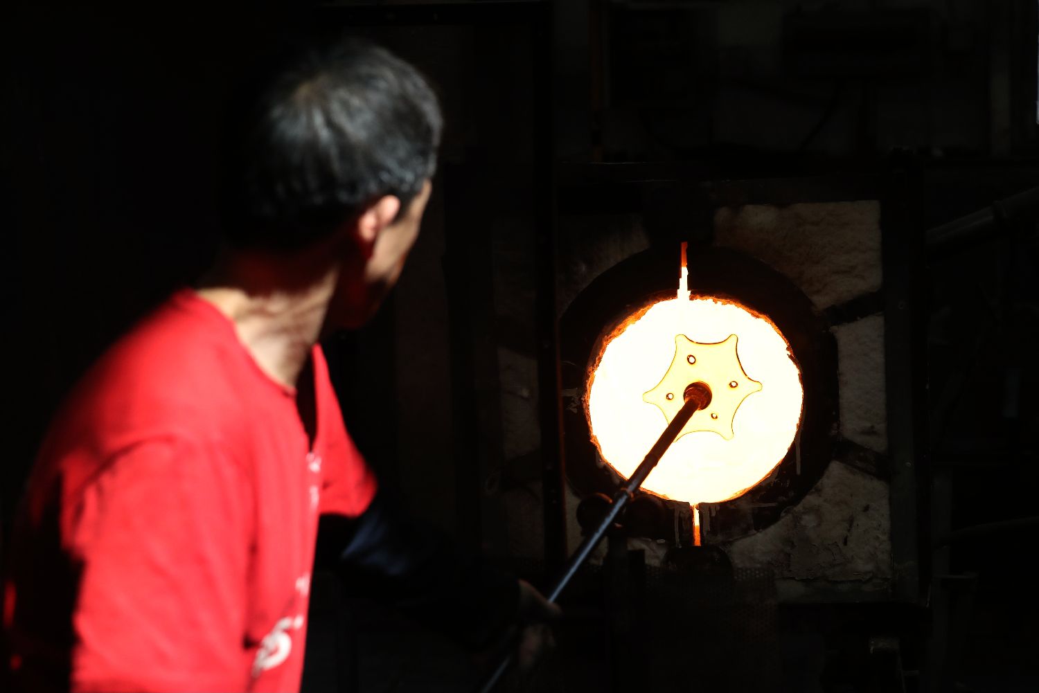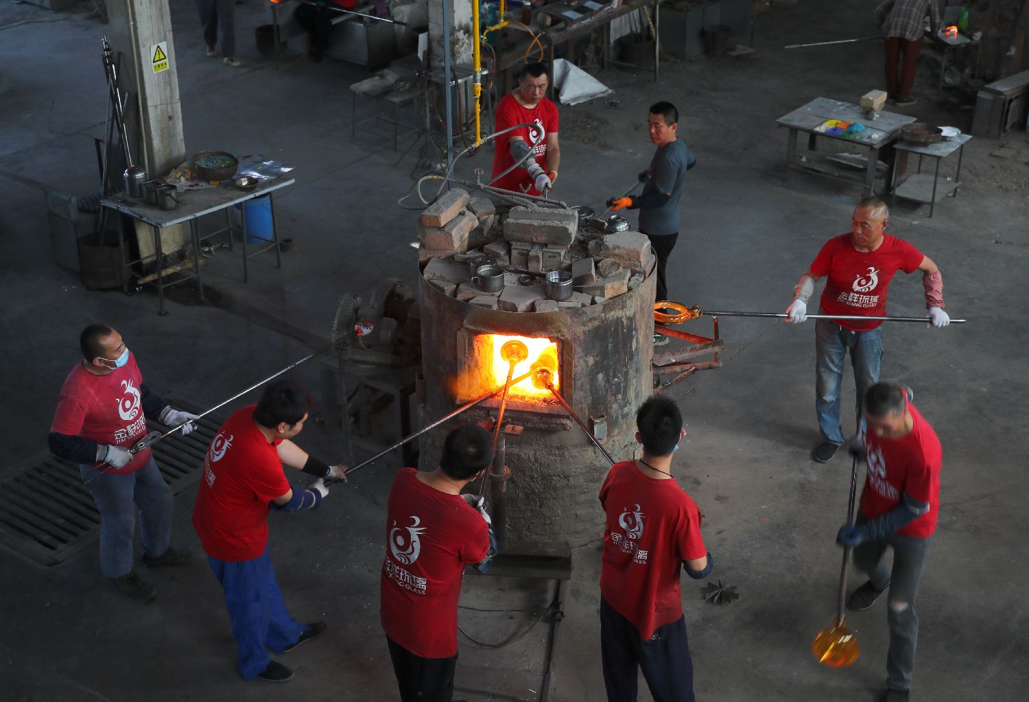 5月9日,在淄博市博山区的西冶工坊,工匠加工琉璃产品。