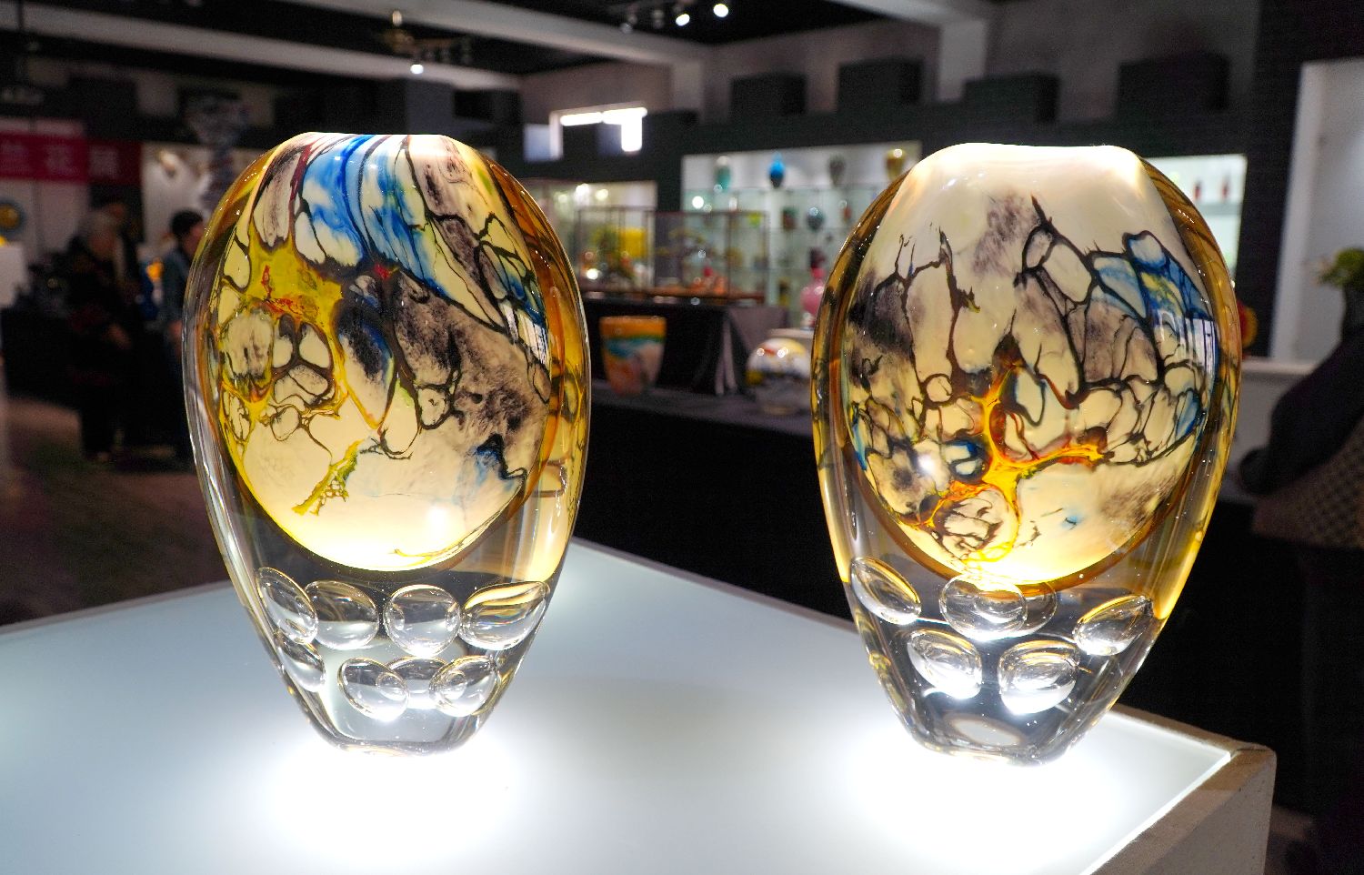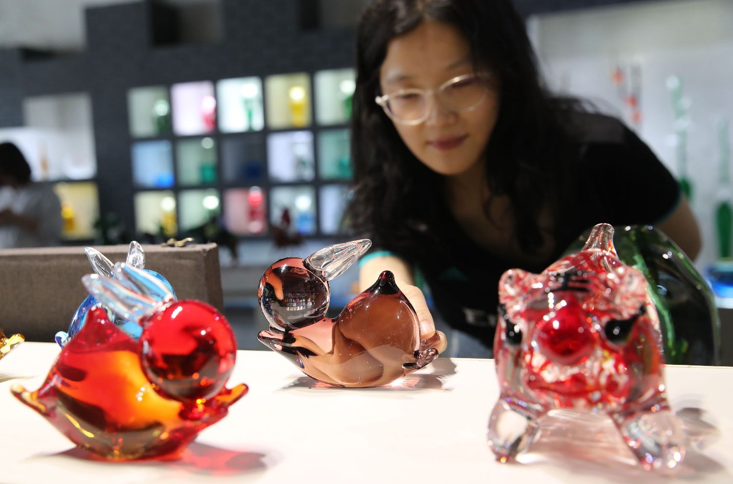5月9日拍摄的在淄博市博山区的西冶工坊展示的琉璃产品。