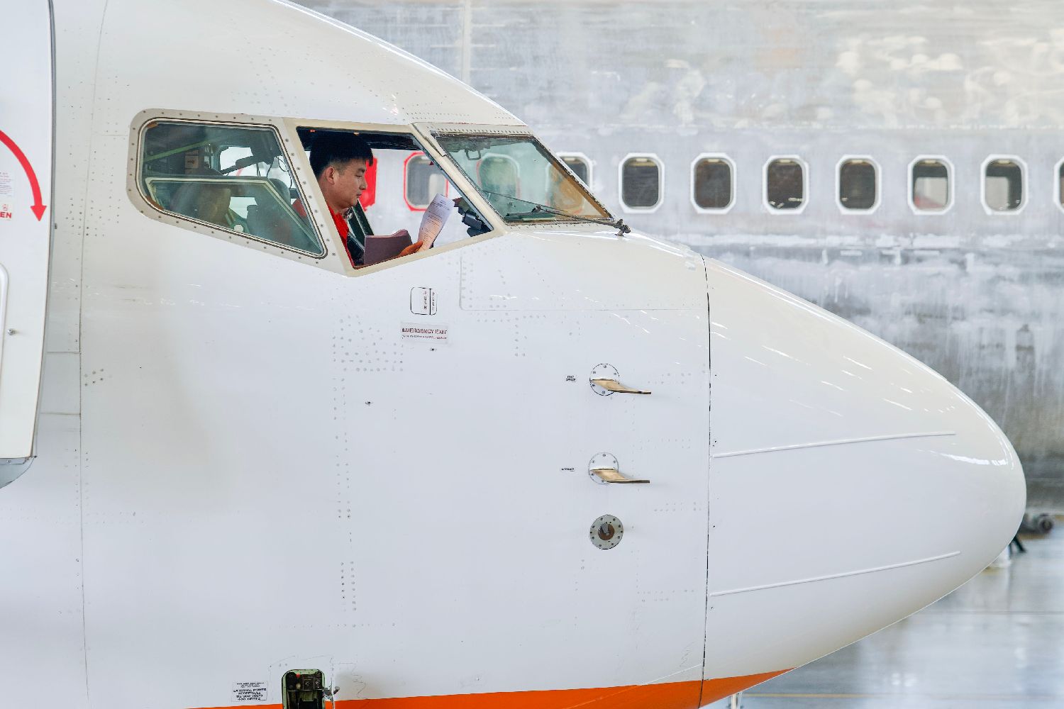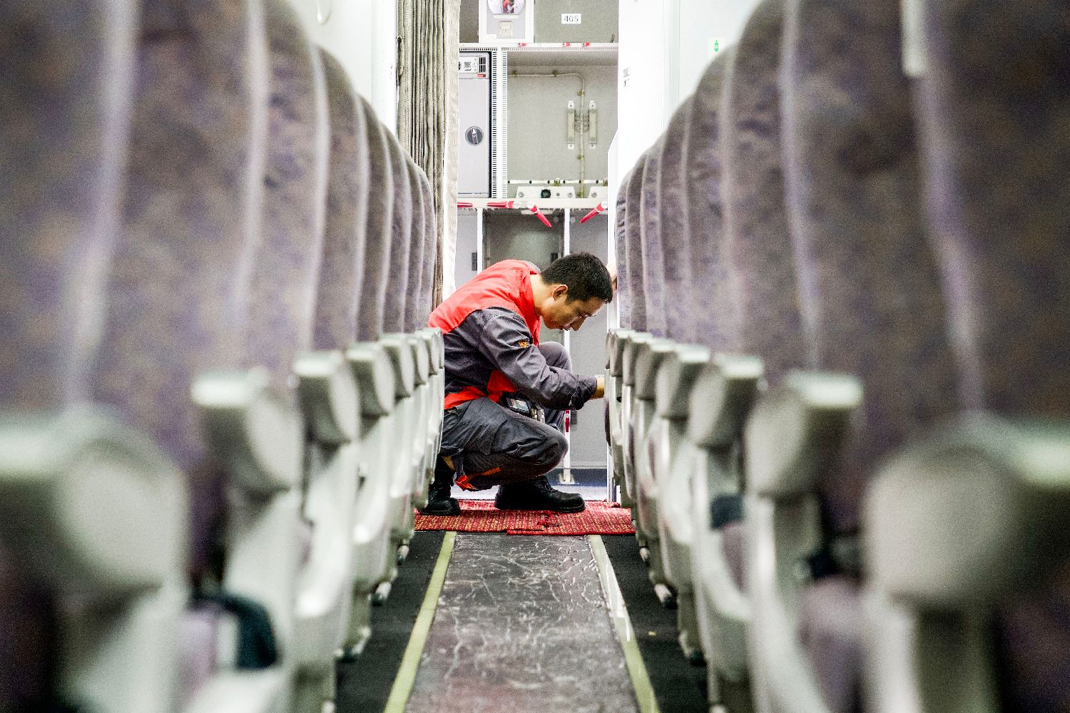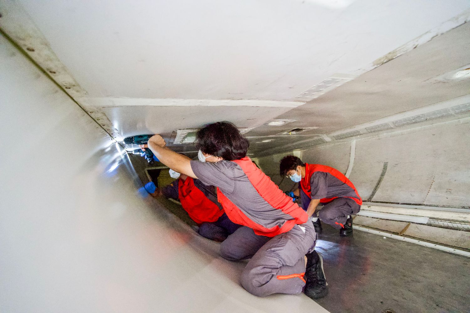 5月13日,海航技术旗下大新华飞机维修服务有限公司的机务维修人员在对进境飞机进行检修。(图片来源:本文图片均据新华社)