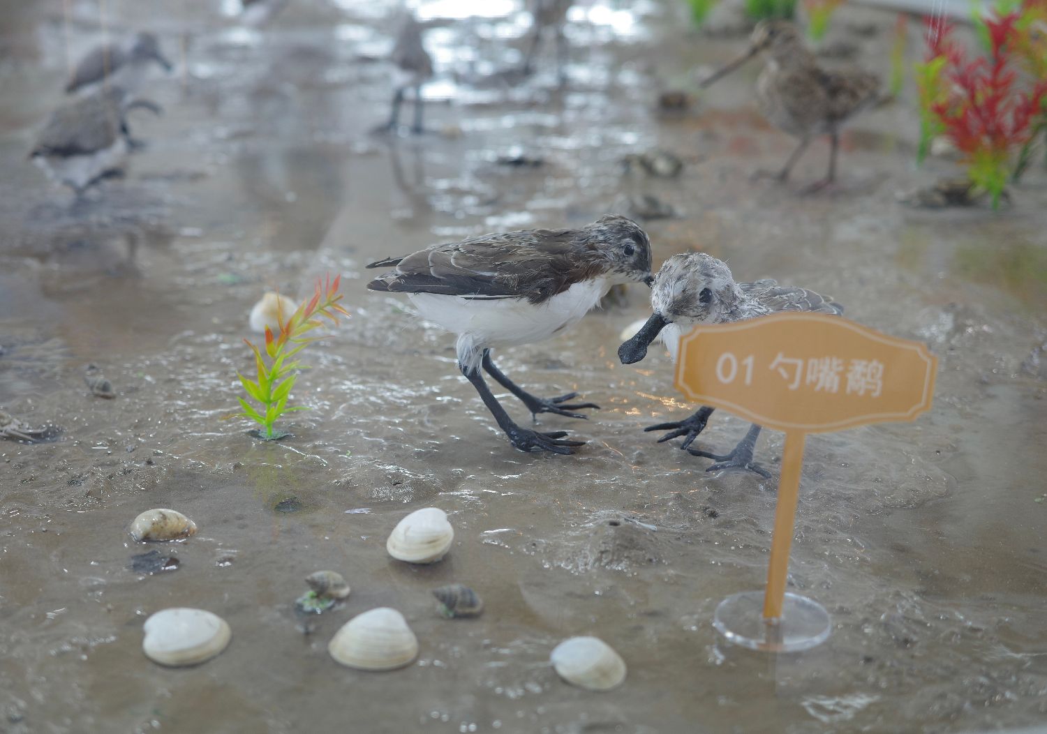 在多样候鸟中,有一只“自带饭勺”的小家伙格外引人关注。勺嘴鹬全球只有600多只,属于极危候鸟,因此也被称为“鸟中大熊猫”。这种体型娇小的鸟类在俄罗斯西伯利亚东北部繁殖,在东南亚丰富的潮间带之间迁徙、过冬。每年,全球超过50%的勺嘴鹬会来到条子泥湿地觅食、换羽。图为勺嘴鹬标本。