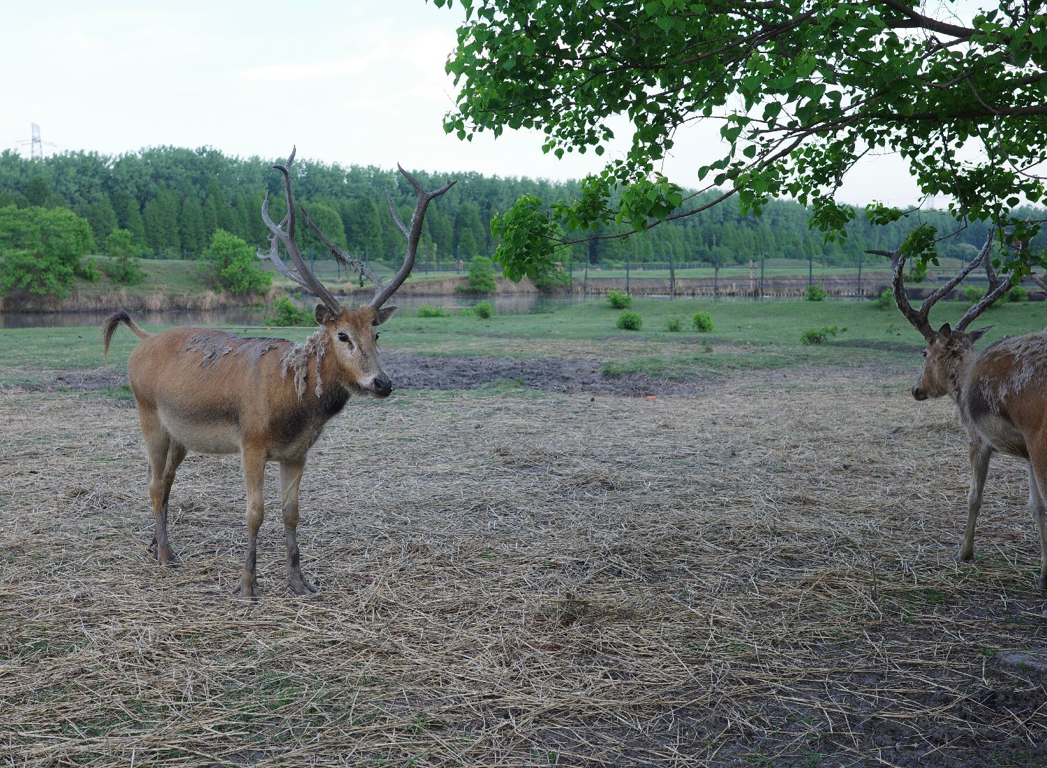 五月的条子泥虽不似迁徙季般热闹,但仍能观测到大量黑脸琵鹭、东方白鹳、小青脚鹬等国家一级保护动物。值得一提的是,因其独特的美丽和在黄海湿地生态系统中的重要性,勺嘴鹬、麋鹿与丹顶鹤一同被称为“黄海湿地吉祥三宝”。图为5月19日,在泰州姜堰溱湖国家湿地公园拍摄的麋鹿。