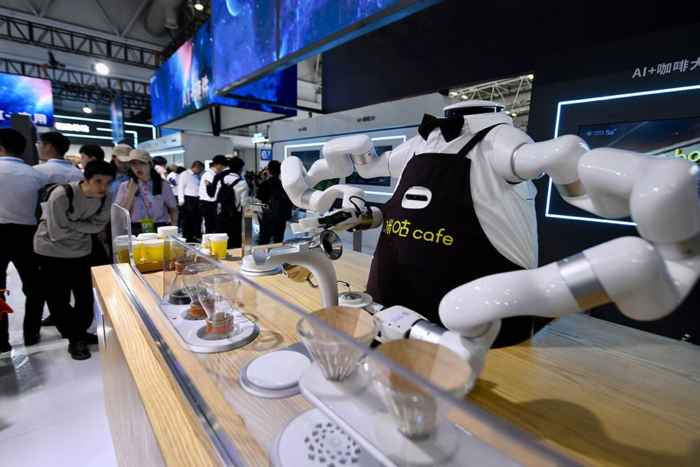 5月23日,机器人亮相第七届数字中国建设峰会,现场泡制咖啡。(图片来源:中新社)