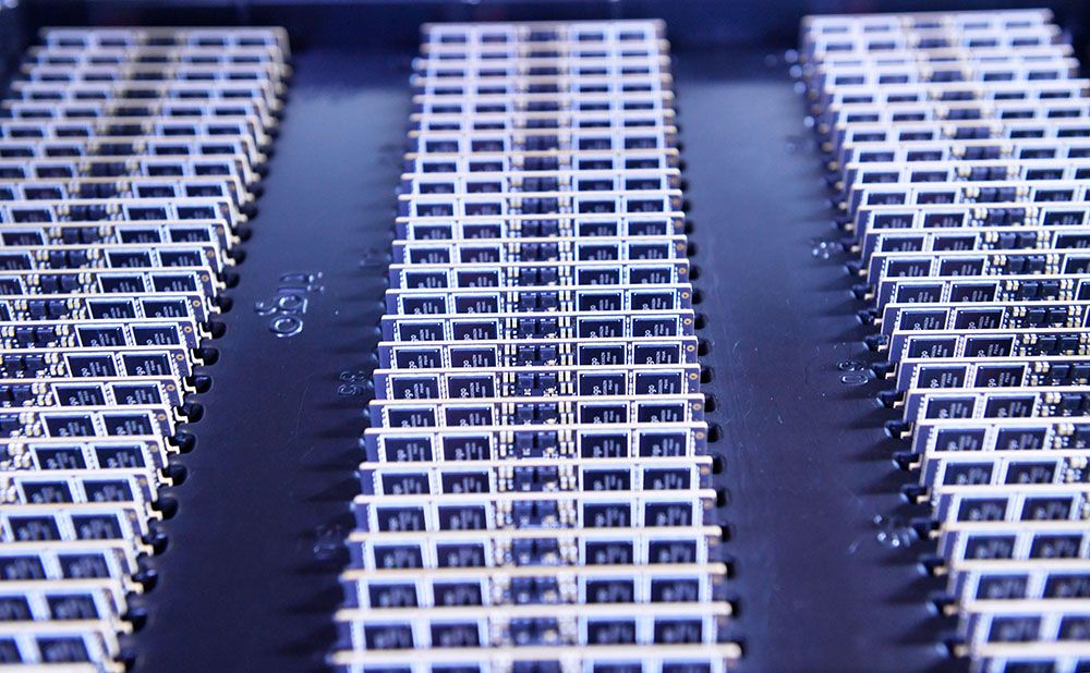 5月27日在广西南宁泰克半导体有限公司拍摄的内存条。