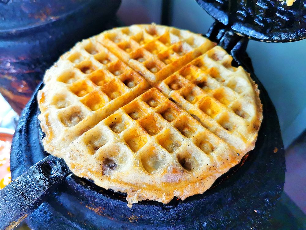“难以置信!在广东台山竟然可吃到中式华夫饼,甜的可加白砂糖或炼乳,咸的可选择搭配的馅料更多,比如香芋粒、擘蓝粒、咸鸭蛋、鲜鸡蛋。当地人把这种华夫饼叫做箩底糍或炉底糍。”近日,从美国波士顿跟随华侨朋友到访台山的新西兰人Nancy感慨地说。