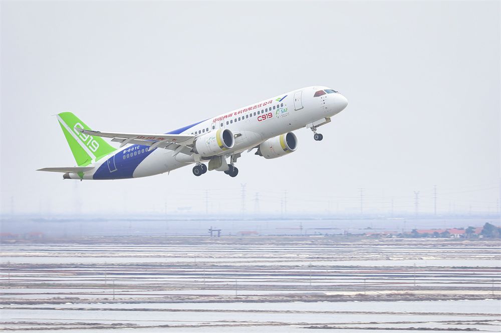 6月5日,C919大型客机首次加注可持续航空燃料(SAF)演示飞行起飞。(图片来源:本文图片均由中国商飞供中新社)