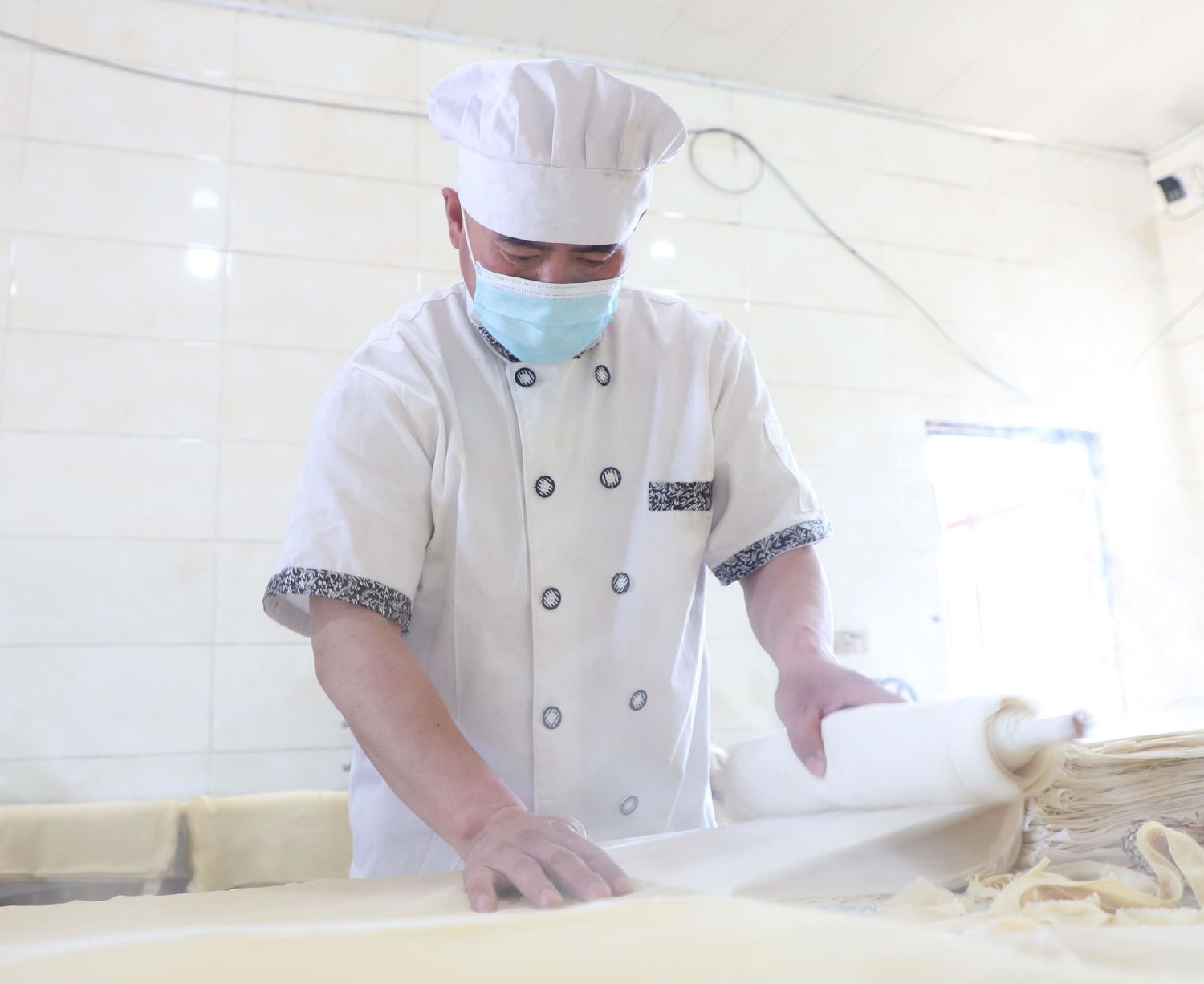 2012年,王建军辞去在黑龙江的工作,回到家乡从父亲手中接过祖辈流传下来的手艺。王建军告诉记者,“面团的软硬程度、盐碱的配比、温度的控制,每个步骤听起来简单,操作起来却很难”。