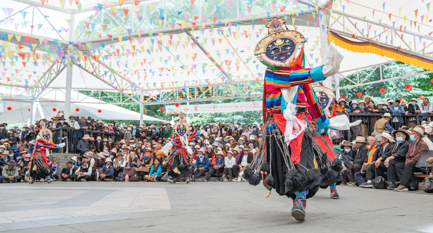 6月11日,藏戏艺人在拉萨市宗角禄康公园表演。(图片来源:本文图片均据新华社)