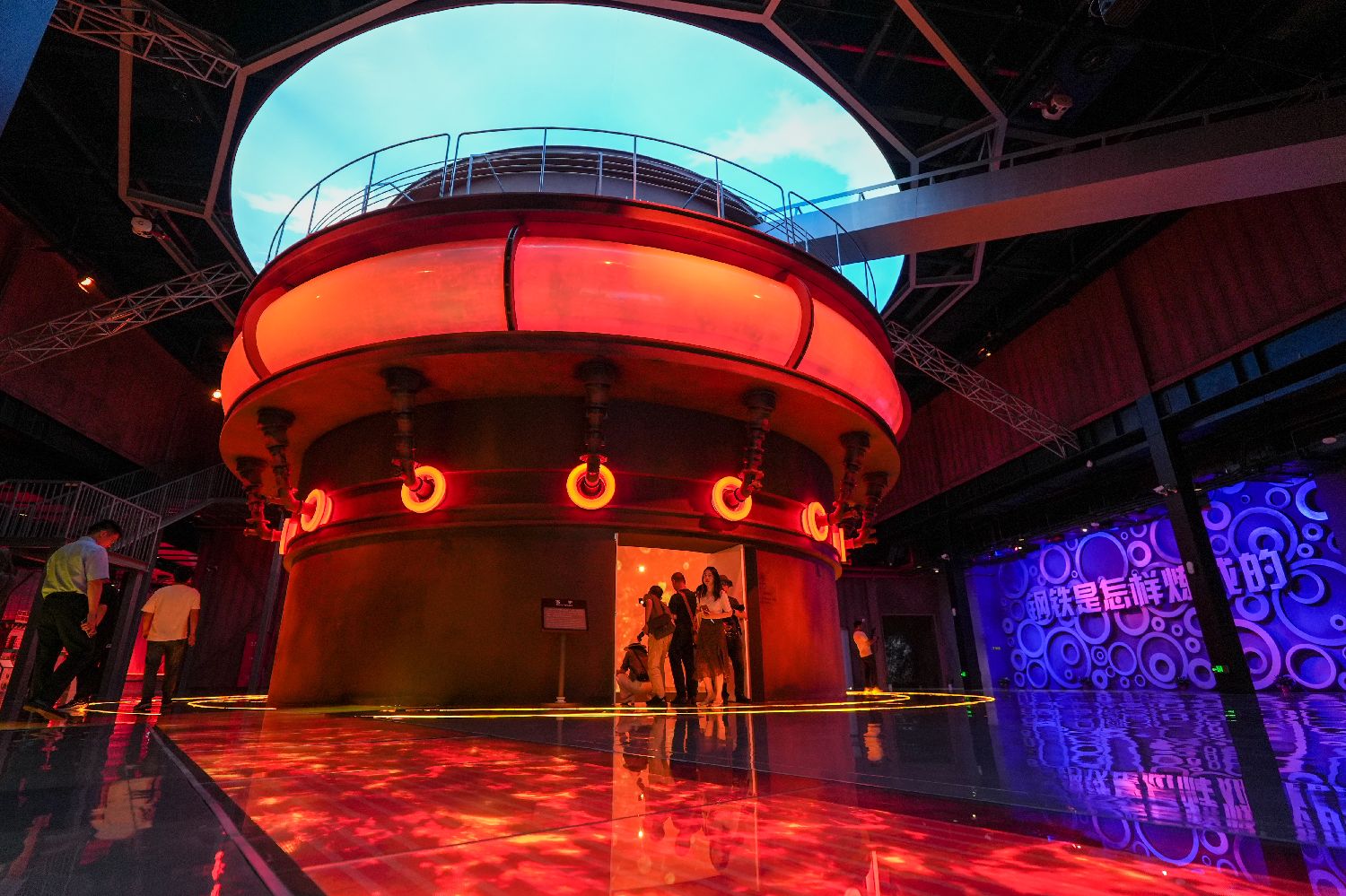 游客在南京市雨花台区梅钢工业文化旅游区钢铁体验馆内参观游览(6月12日摄)。