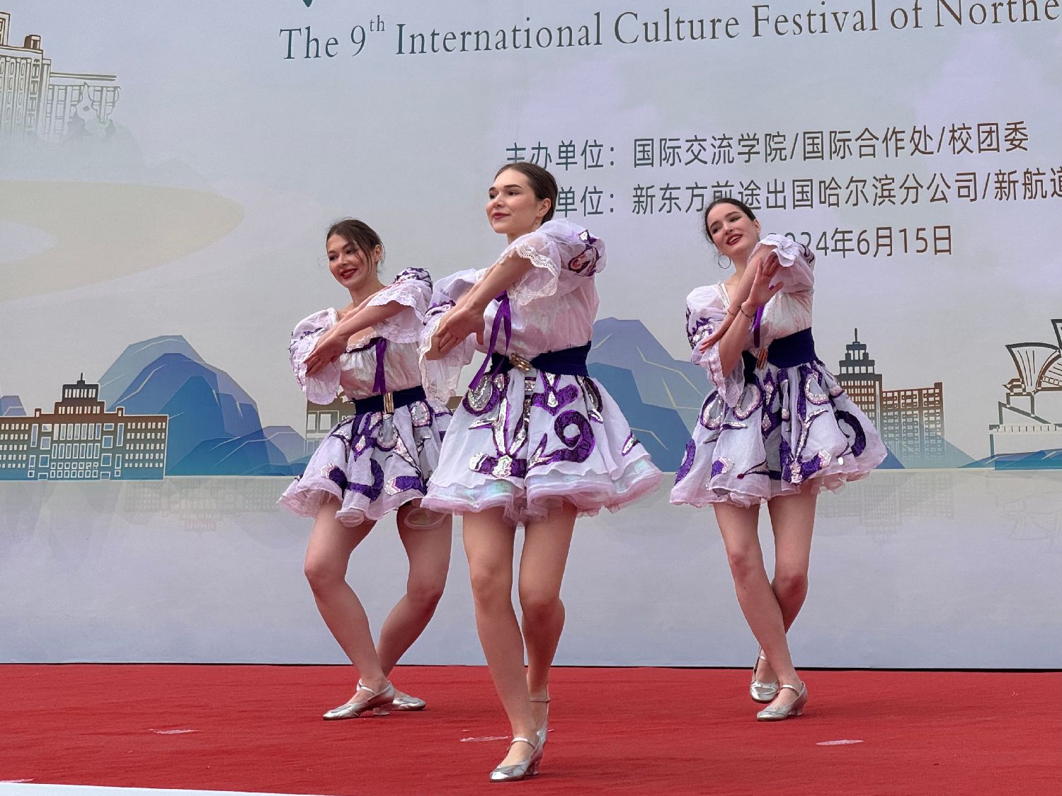 6月15日,在东北林业大学第九届国际文化节上,俄罗斯留学生进行舞蹈表演。
