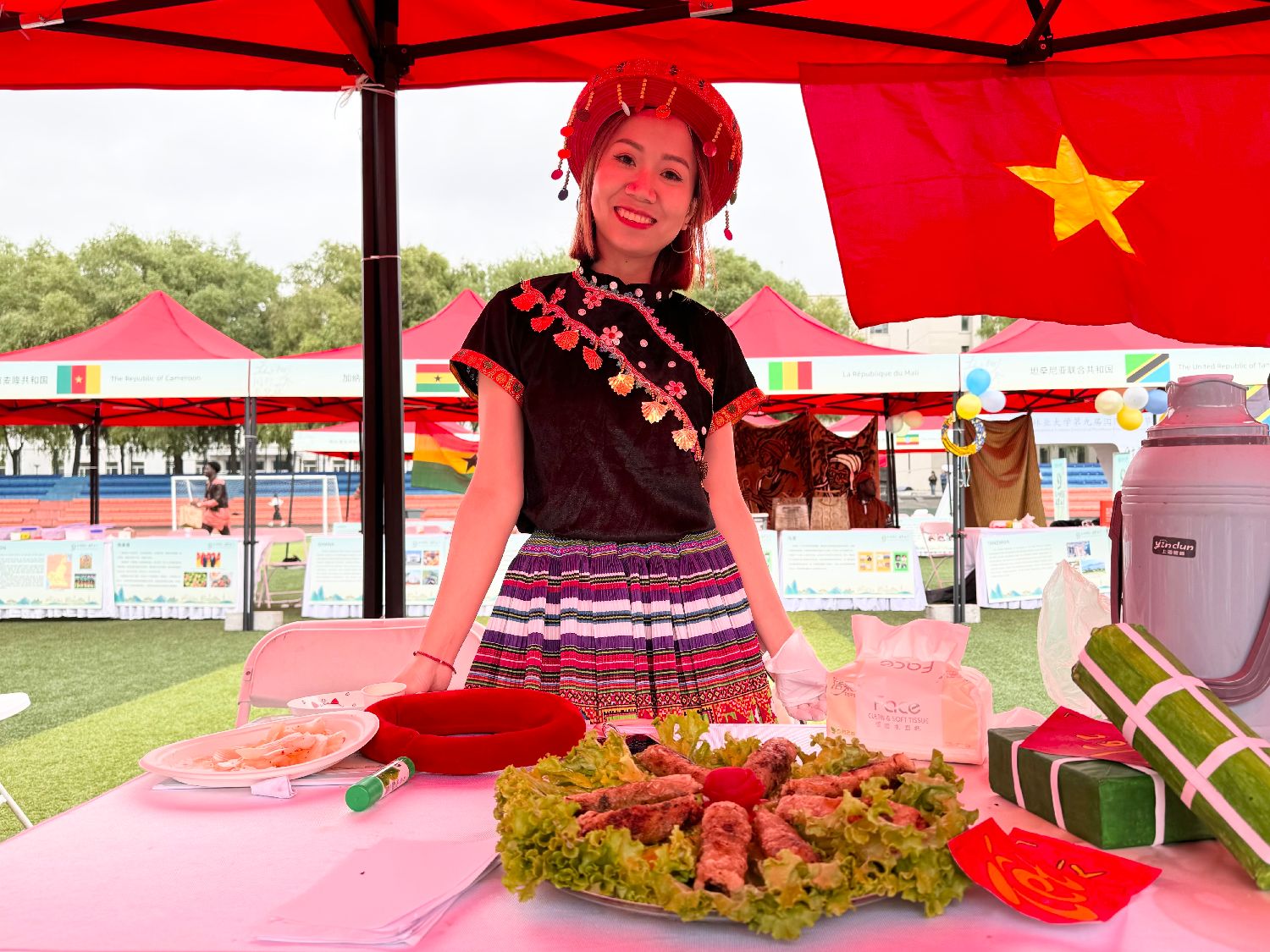 6月15日,在东北林业大学第九届国际文化节上,越南留学生展示自制春卷。