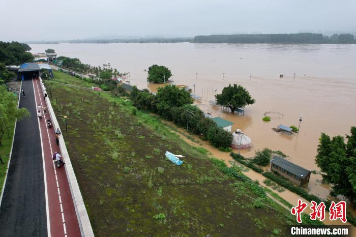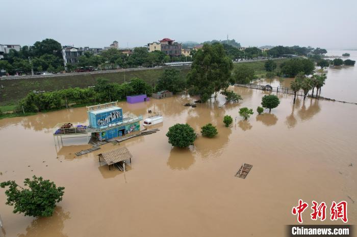 6月18日,福建福州,堤坝外面的游乐设施已被洪水淹没。