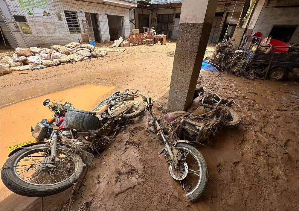 泗水市场内一片狼藉,多辆摩托车陷入了厚厚的泥土,各种物品散落满地。“摩托车本来是停在市场外的。平常我们都来这里买菜买肉,想不到一夜之间变成这样。”陈阿姨感叹不已。她家里的很多家具被洪水冲走,不知去向。房屋地面堆积了厚厚的泥土,还没来得及清理。