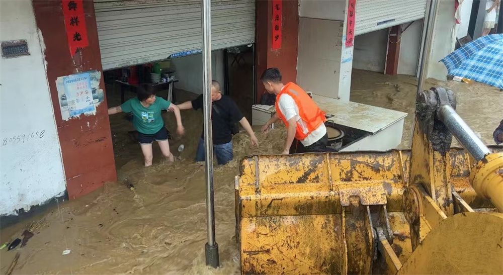 6月20日,安徽省黄山市屯溪区在转移被困民众。(图片来源:屯溪区融媒体中心供中新社)