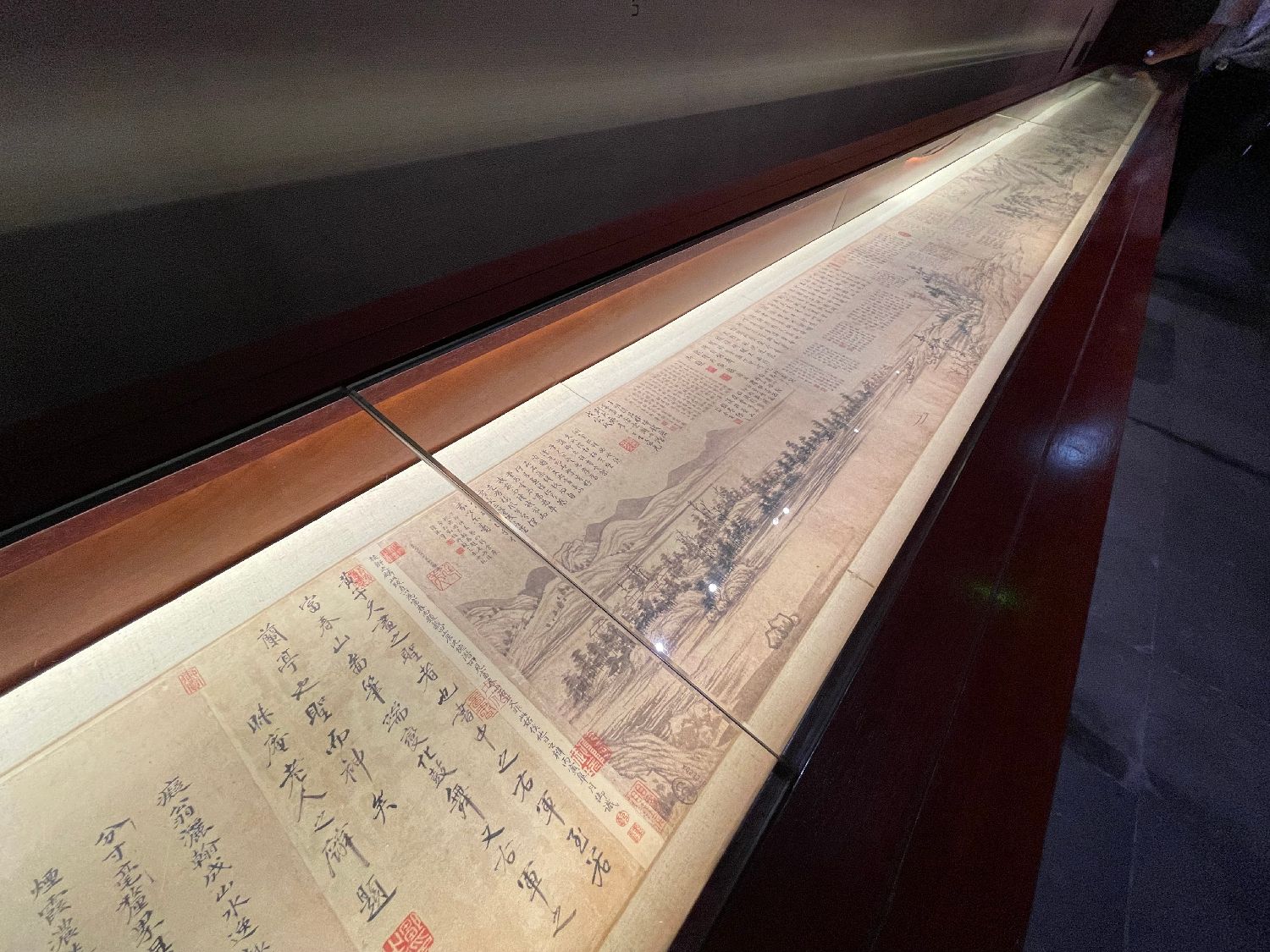 图为华文媒体代表参观富春山居图中还原的山水景色。
