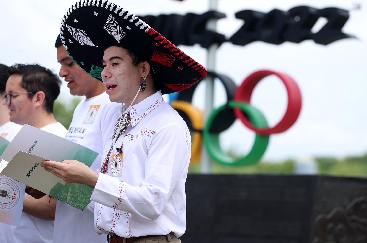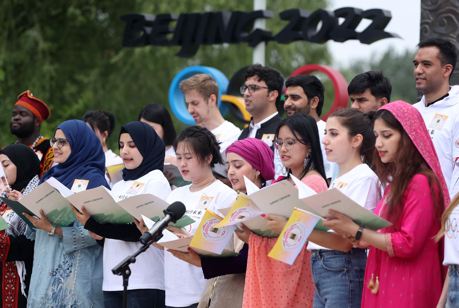 6月23日,外国留学生代表朗诵《奥林匹克宣言》(节选)。