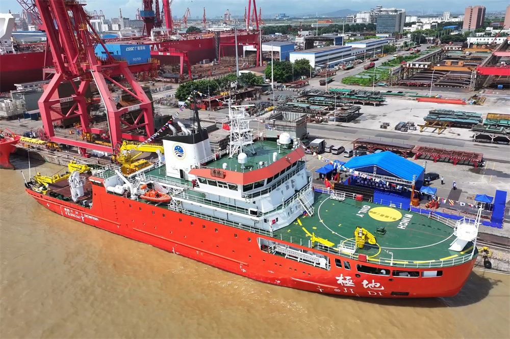 6月24日,中国自主设计建造的新一代破冰调查船在广州交付。(图片来源:中新社)
