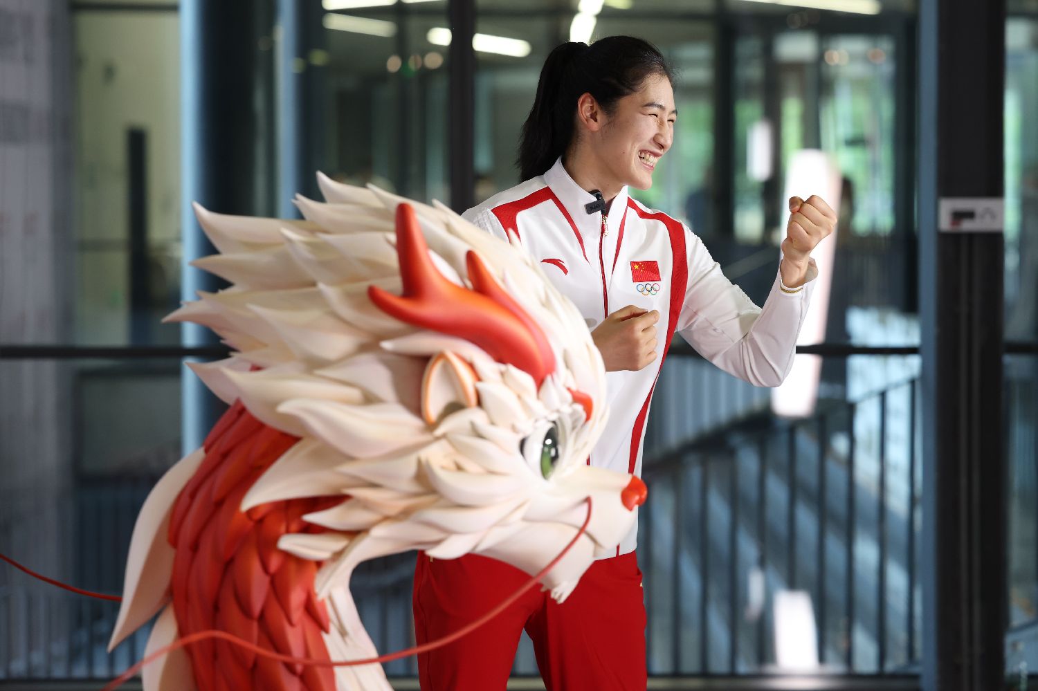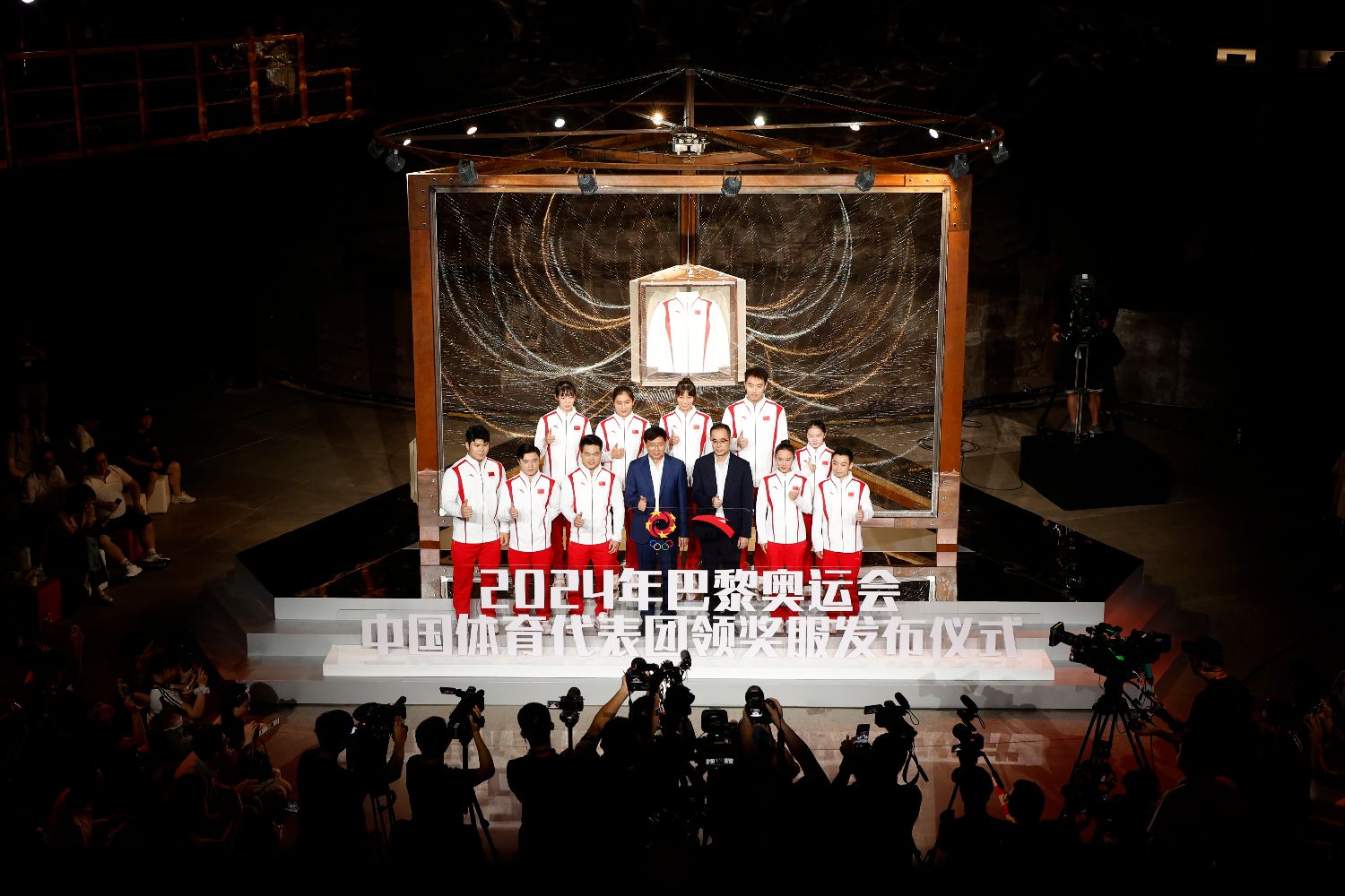 6月25日,巴黎奥运会中国体育代表团领奖服在北京发布。(图片来源:中新社)